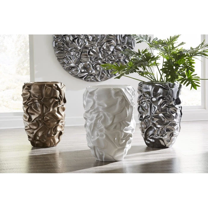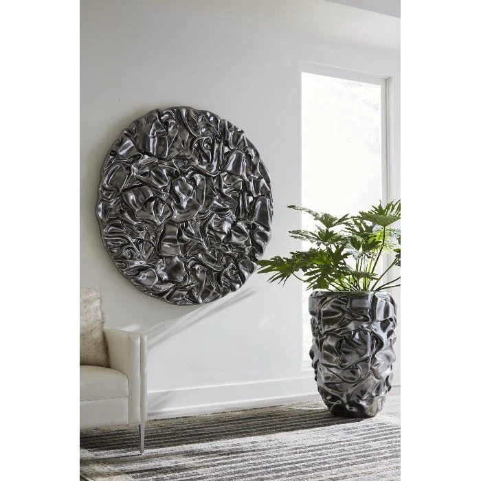 Make waves in your space with the hypnotizing Drape Planter. Made from composite with a magnificent liquid silver finish, the Drape Planter boasts an elaborate, fabric-like texture that resembles a billowing bundle of cloth enveloping the surface of the piece. The result is a calming, aesthetically pleasing design that effortlessly wraps itself around the imagination. This alluring planter can also be found in polished bronze and white gel coat variants, both of which are perfect representations of the Phillips Collection ethos: modern organic.