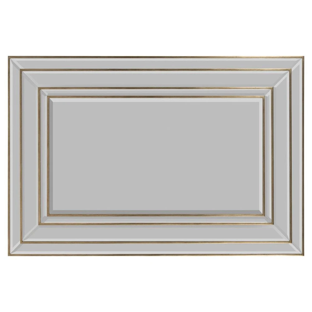 Description: Individual panes of clear bevelled mirror, with a floating frame around the main central mirror which is also bevelled. The exposed frame finished in antique brass leaf.