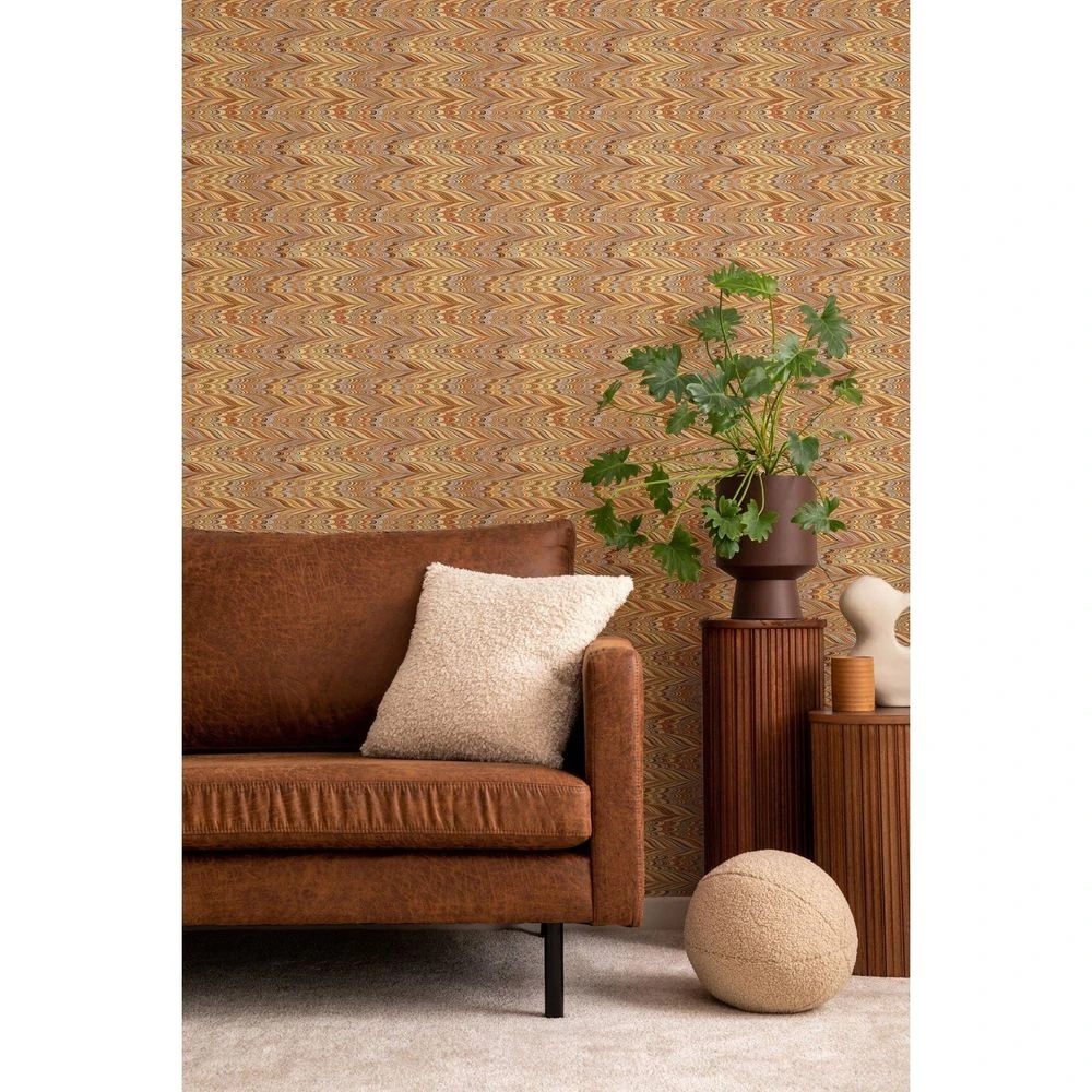 EndPaperis a chic wallpaper pattern that takes its cue from the traditional endpapers found in hardcover books. The iconic marbleized design has been given a contemporary update. Its 70s-inspired color palette makes it a bold choice for those who are drawn to dramatic design, but its earthy warm hues ensure it won’t feel overwhelming.