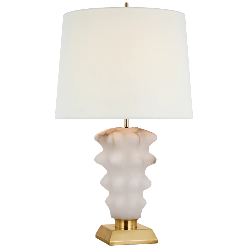 - Finish: Alabaster and Hand-Rubbed Antique Brass w/ Linen Shade