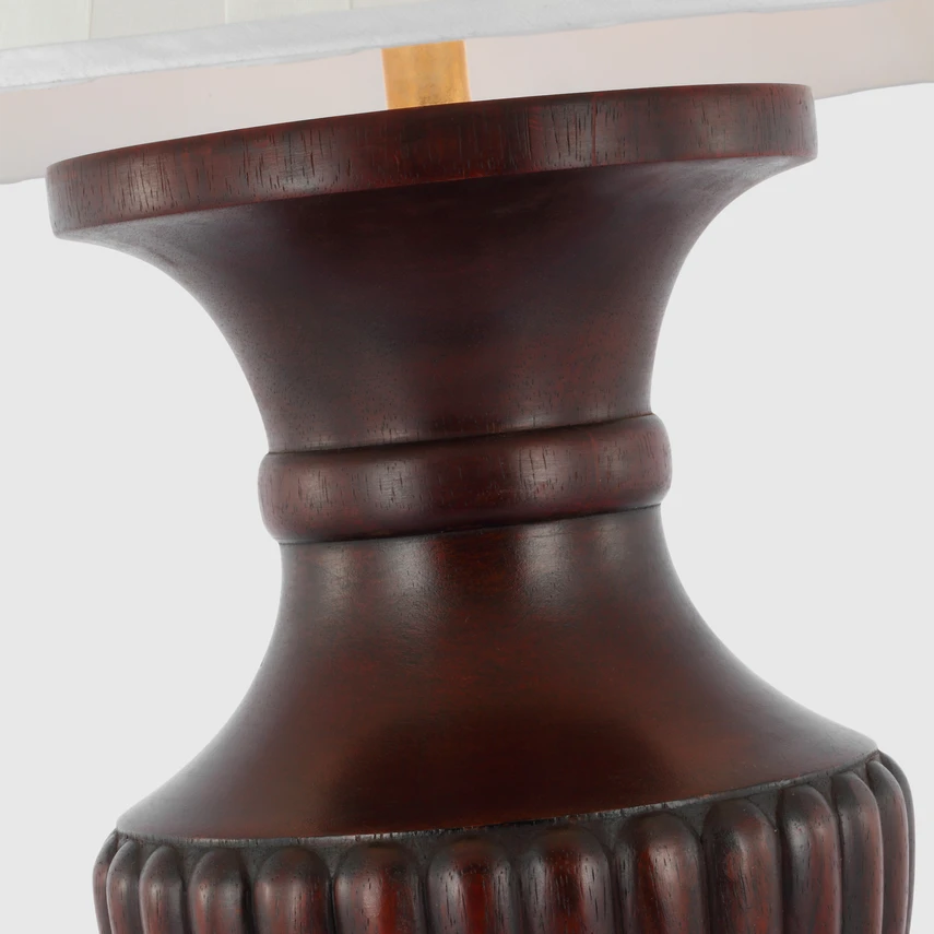 - Finish: Mahogany w/ Silk Box Pleat Shade
