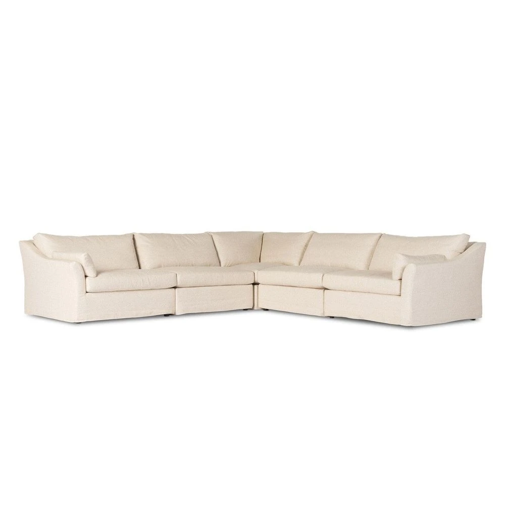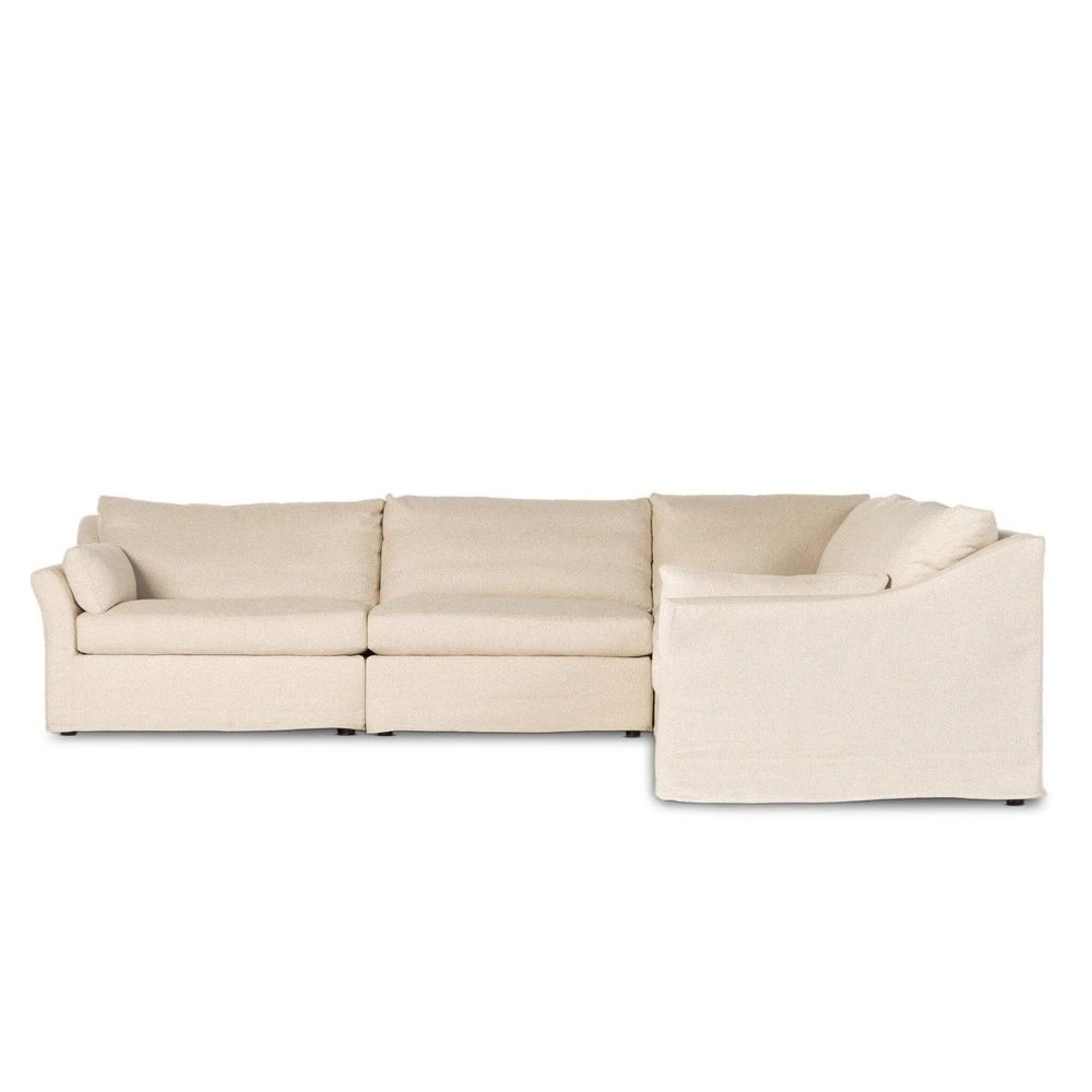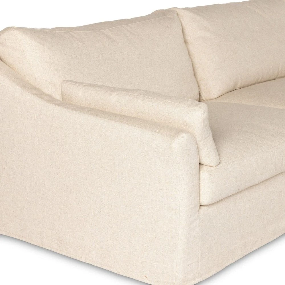 Description: Proudly built by American makers using US-sourced materials and mechanisms. Flared ends place an updated twist on the classic rolled arm of this sectional, with down feather-blend cushioning for laid-back lounging. Sectional is upholstered with a fully removable slipcover of PFAS-free performance fabric that can be dry-cleaned for easy care. Performance fabrics are specially created to withstand spills, stains, high traffic and wear, ensuring long-term comfort and unmatched durability. Crafted in the USA.