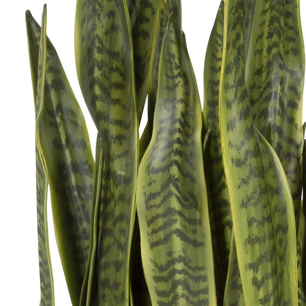 Accent your space with this life-like snake plant, featuring a contemporary antique brass pot nested in a matte black metal stand. Stand is a separate piece and allows for the pot to be displayed directly on a surface.