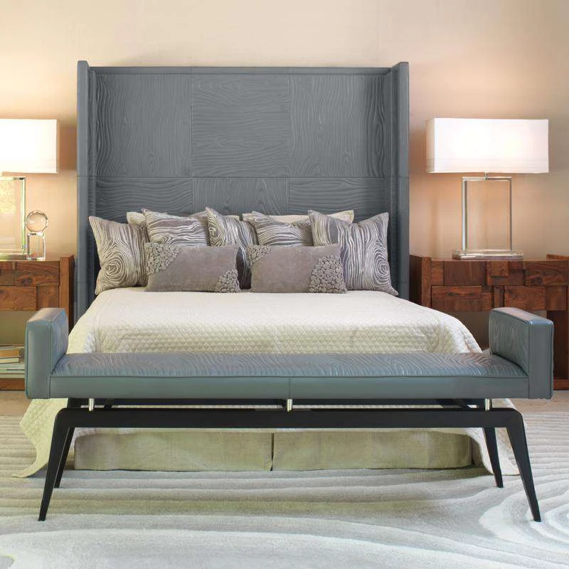 Grey leather features wood-like quilting putting the “bois” in our Faux Bois City Bench. The whimsical stitiching contrasts beautifully with the ebony lacquered angular legs.