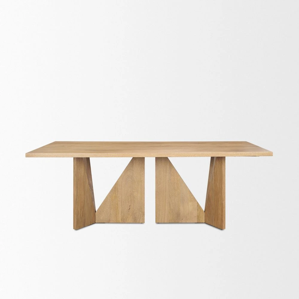 Description: Finn Dining Table features a rectangular tapletop that rests on three angled legs that come together to form a beautiful, slender silhouette.