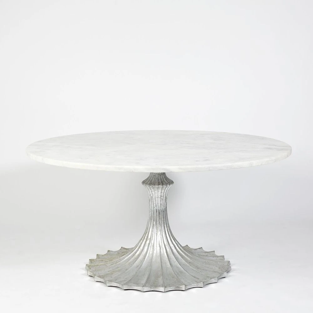 Description: The feminine shaped base and luxe top options of our Flute Table makes it a customer favorite. Fluid fluted details add interest to a classic tulip style base and pair perfectly with both our wood and marble tops. Mix and match to make a one of a kind table all your own!
