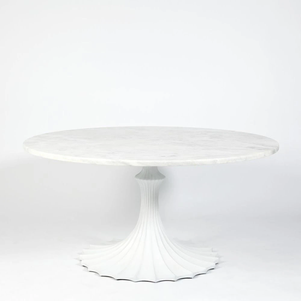 Description: The feminine shaped base and luxe top options of our Flute Table makes it a customer favorite. Fluid fluted details add interest to a classic tulip style base and pair perfectly with both our wood and marble tops. Mix and match to make a one of a kind table all your own!