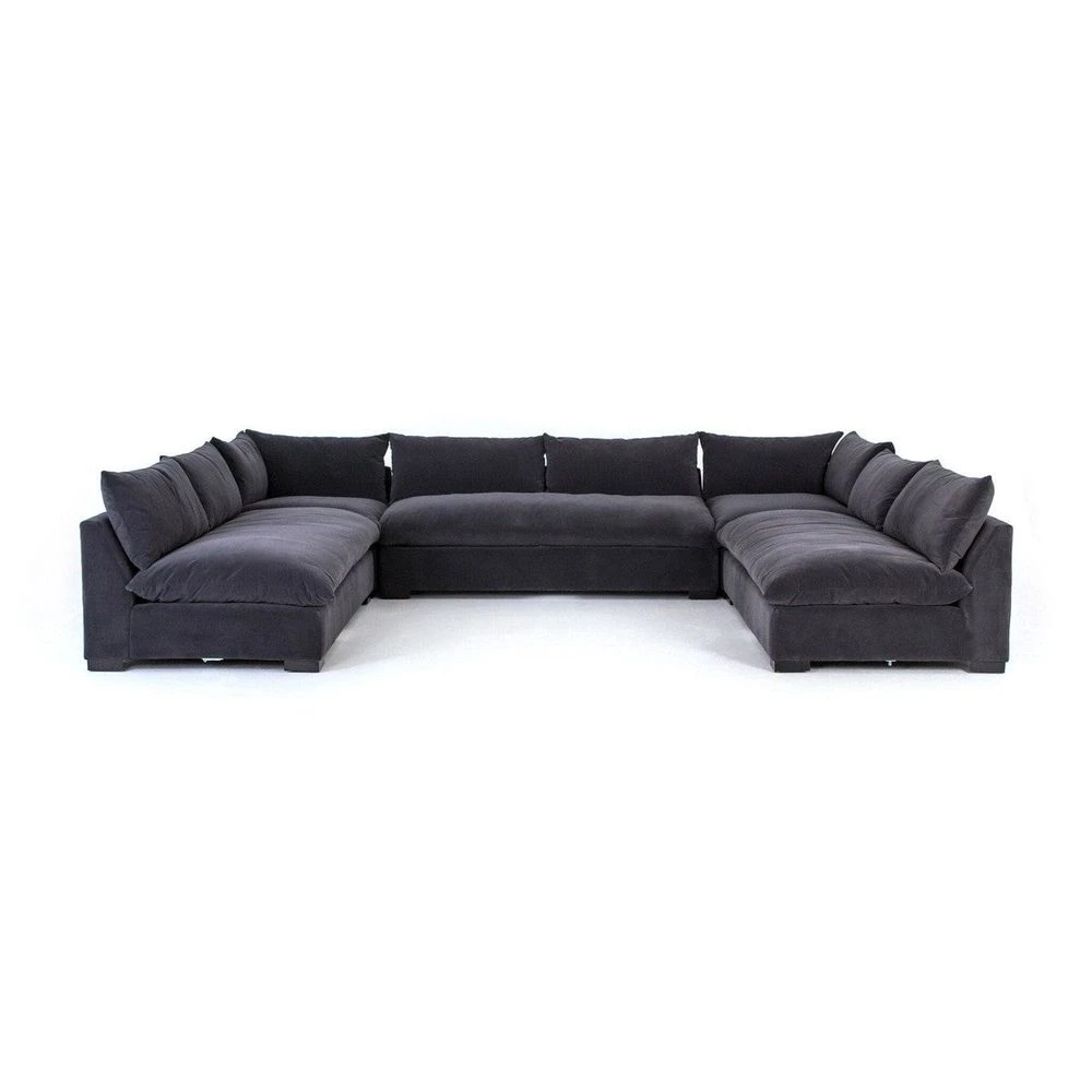 - Description: Welcome to the modern lounging essential. A simplified sectional is upholstered in soft, durable, stain-resistant Crypton fabric in an invitingly dark charcoal.
