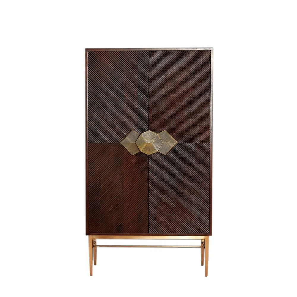 Carved dark wood set off the contrasting brass hardware inspired by the turtlebacks of the oversized species in the Galapagos island.