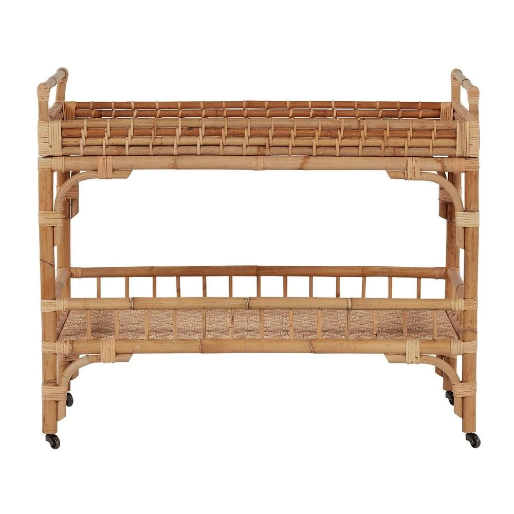 Coastal cocktails coming right up! Celebrate and relax with the 5 O’Clock Bar Cart featuring a rattan, double-tiered body and casters for added convenience.