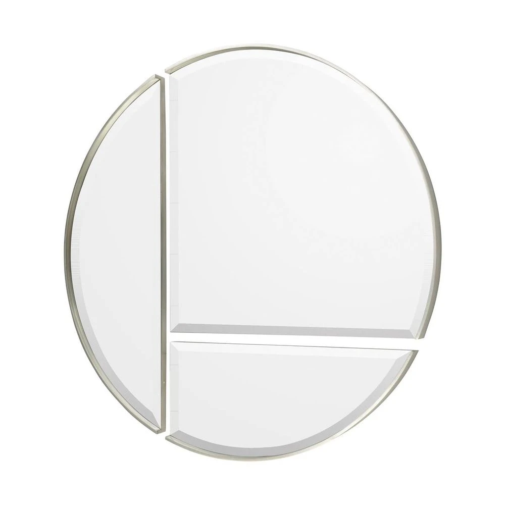 Description: An unusual circular triptic mirror in pewter silver and bevelled modern mirror. French cleats are fitted.