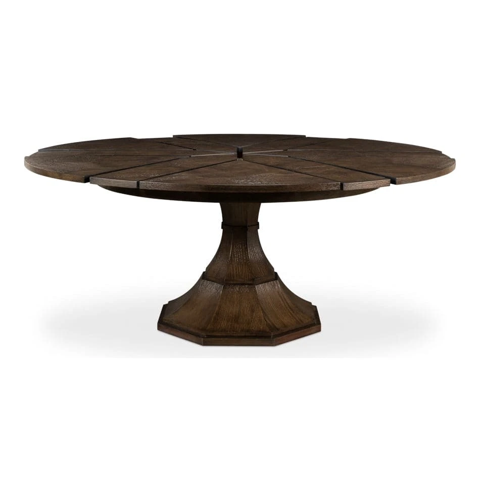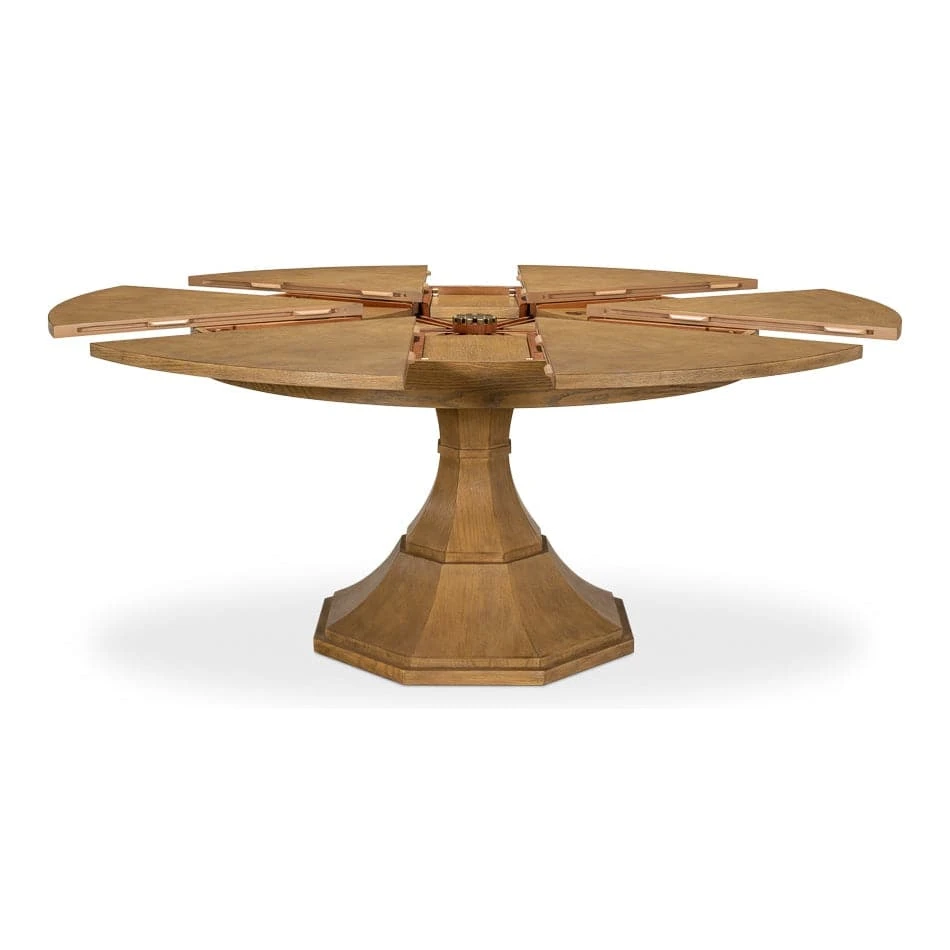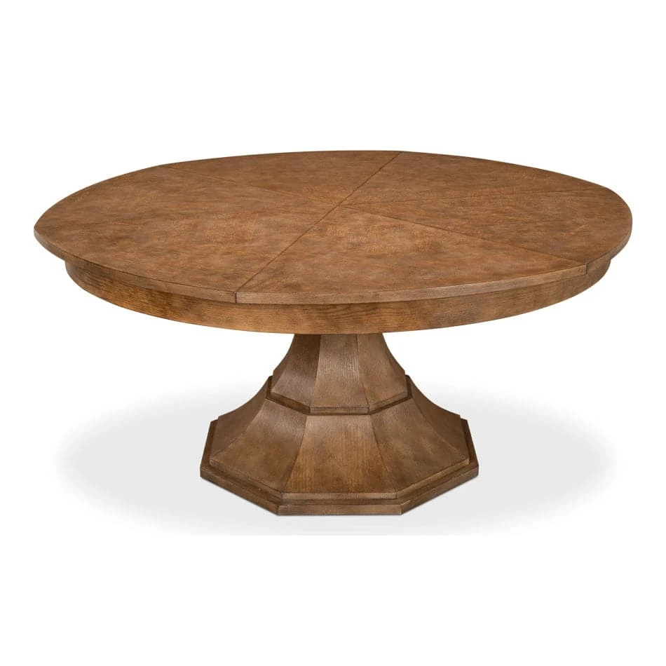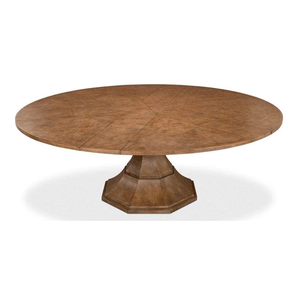 The Giselle Jupe Table is a transitional style with a hint of tradition in the herringbone marquetry on the top. The base is an appealing combination of curves and facets.