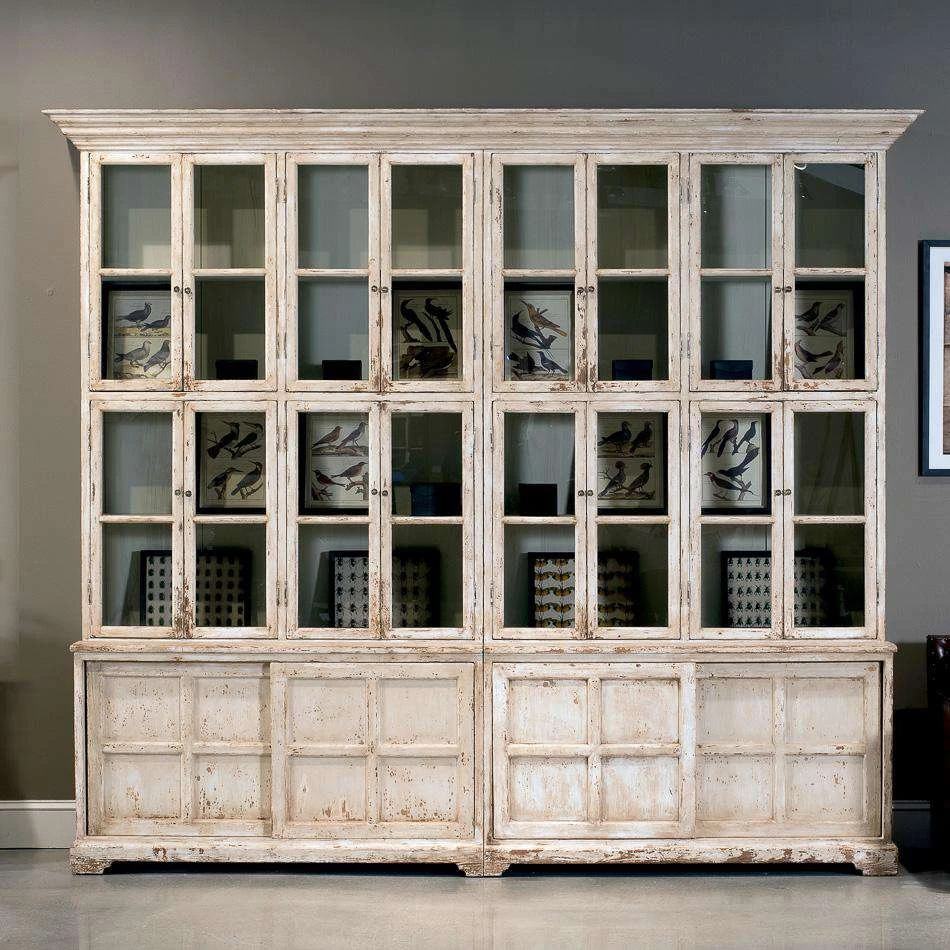 From The Farmhouse Collection, our Glass Front Cabinet is a scene stealer. We think its size will gain attention and you can privately rejoice that the storage and display areas suit you so well. Eight fixed shelves and two removable ones.