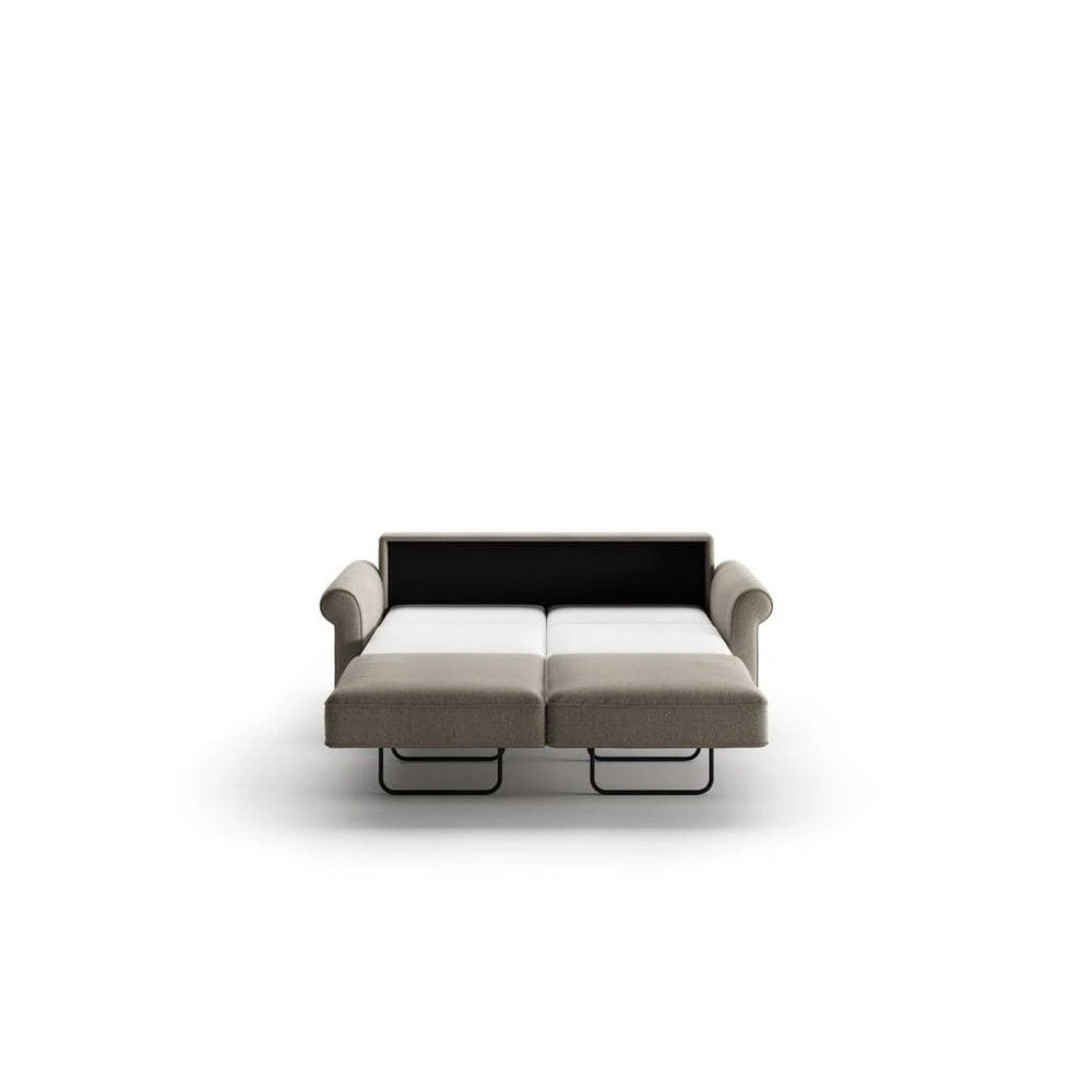 This design pairs a traditional rolled arm style with a modern dual motion function that offers a bed in two sections. Offering any combination of sitting and sleeping.