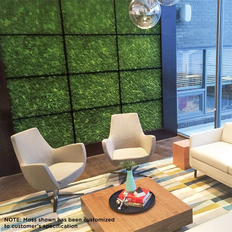 Use the custom bronze-black painted MDF frame for a more unique look. It has an open front and no glass, making it easy to hang in any direction. Whether you use it as a textural focal point or as a way to cover a large area, the Green Wall is sure to add a touch of natural beauty to any space.