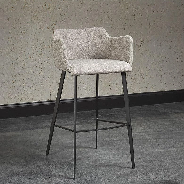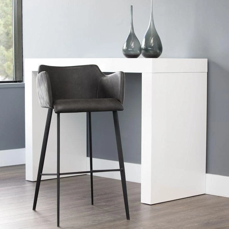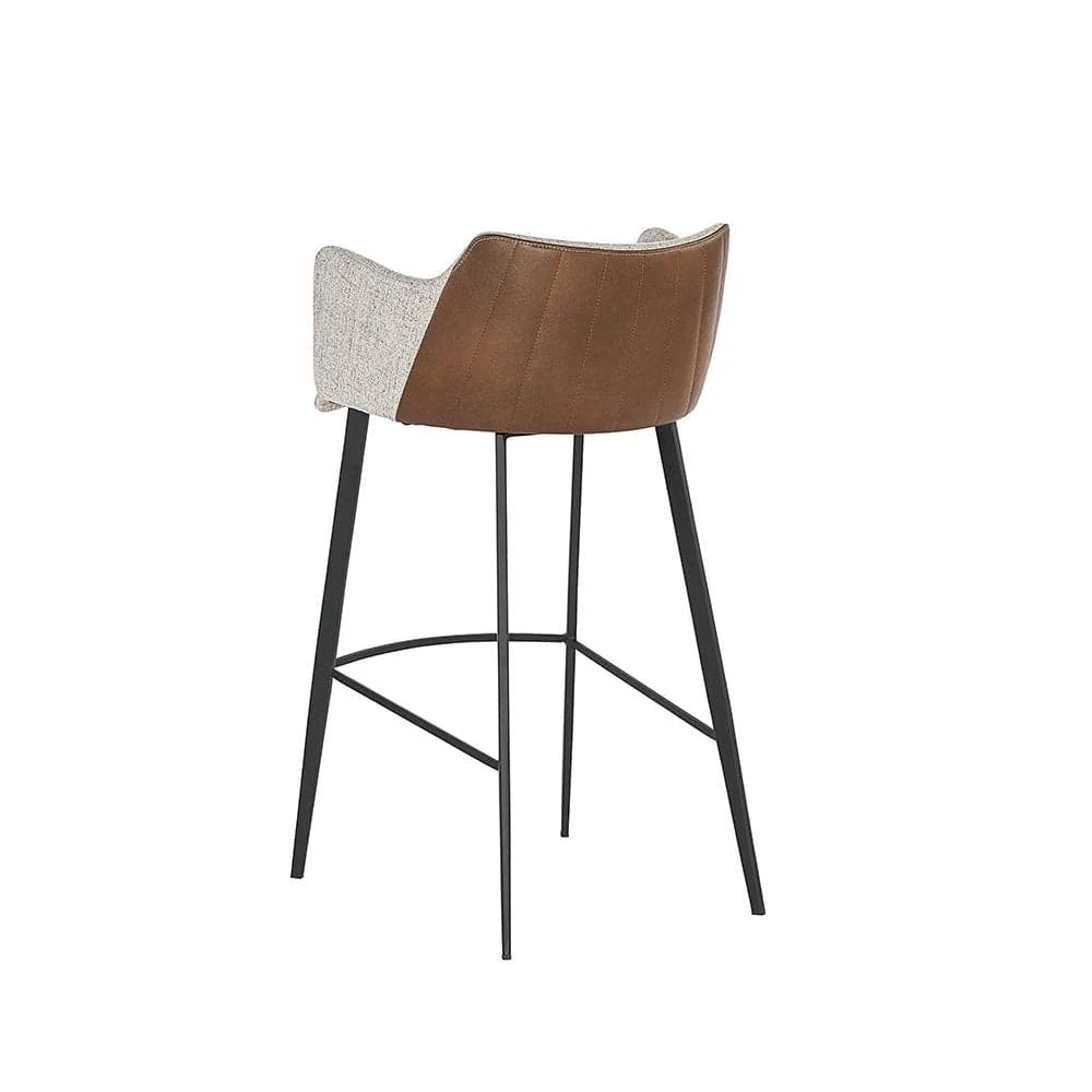 This modern barstool will provide comfort and style to any residential or commercial space. Features an interior seat in November grey fabric and a contrasting channel stitched exterior seatback in bravo cognac faux leather. Finished with sturdy black powder coated iron legs. Suitable for various dining, kitchen and bar spaces of all sizes. Handle With Care: This design has been crafted with faux leather. Faux leather is manufactured to reflect the natural characteristics of leather; as such, colour variations, markings, wrinkles, grooves, and light scratches are appreciated characteristics. No two pieces will be alike. Visit our Product Care page for more information on how to ensure the lasting beauty of this piece.
