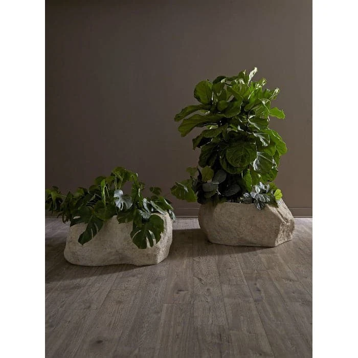 The Quarry Planter offers the perfect blend of organic shape and modern materials. Our Roman Stone finish is created with a resin and crushed stone composite which lends an authenticity of a natural boulder without the weight. Its rocky shape and uneven edges add a touch of rustic charm, while the composite ensures its durability and lightweight. Whether used as a statement piece indoors or outdoors, the Quarry Planter is sure to make a bold impact in any home.