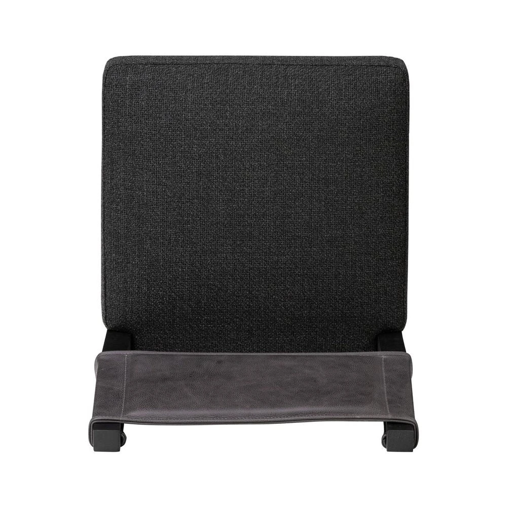 Mixed materials at their finest. Black ash parawood frames squared seating of high-performance fabric. The back, upholstered in lightly waxed black top-grain leather, readies this modern-minded armchair for the head of the table. Performance fabrics are specially created to withstand spills, stains, high traffic and wear, ensuring long-term comfort and unmatched durability.