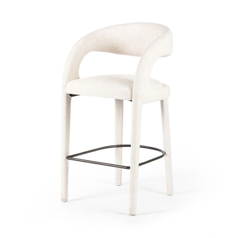 - Description: Strike a pose. Curved and finely sculpted, a high-performance fabric-upholstered stool makes for a shapely addition to the well-styled bar. Performance fabrics are specially created to withstand spills, stains, high traffic and wear, ensuring long-term comfort and unmatched durability.