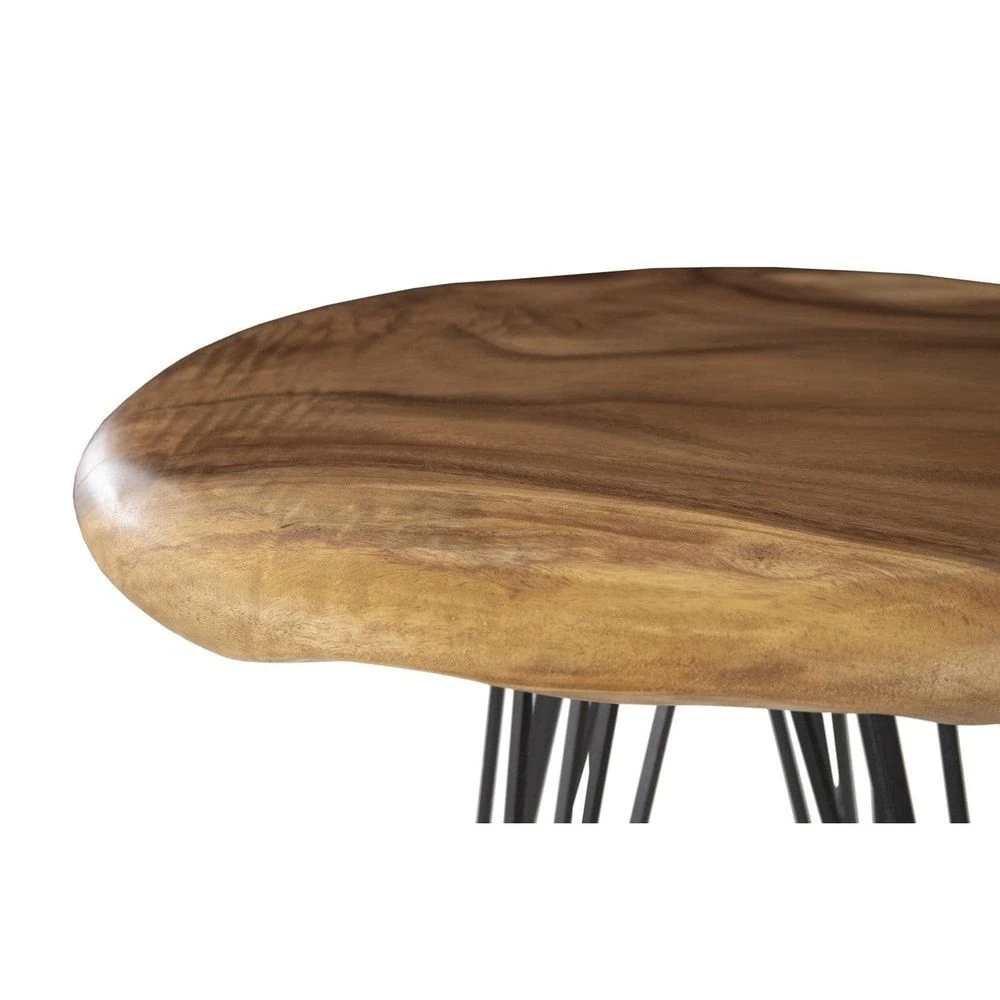 This simple, elegant bar stool is crafted from solid Chamcha wood, an acacia species native to Thailand. Hand sculpted with a rounded seat and affixed to four iron legs, this bar stool combines a soft organic look with modern sheen. We also offer identical String Bar Stools that create a stylish and functional bar set for your living space.