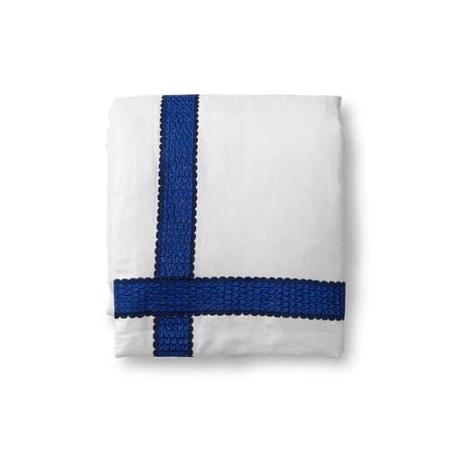 Inspired by Egyptian and Iranian tiles, Inzik’s elegant floral motif in a classic white and indigo color palette translates beautifully to textile for the Met x Ann Gish collaboration.