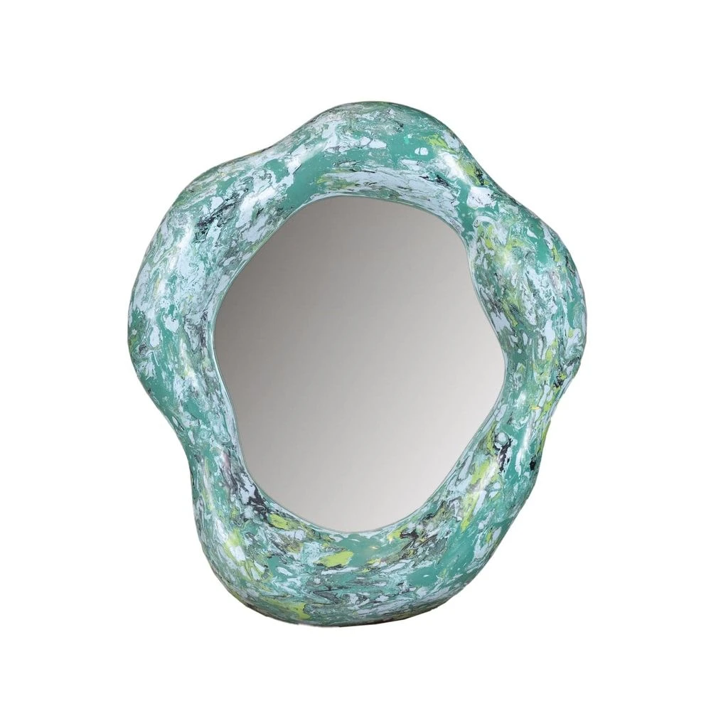 Crafted from terrazzo this unique mirror is the perfect accent for any wall. The organic shaped frame surrounds a glass mirror, ideal for reflecting light around the room or just one last check before you walk out the door.