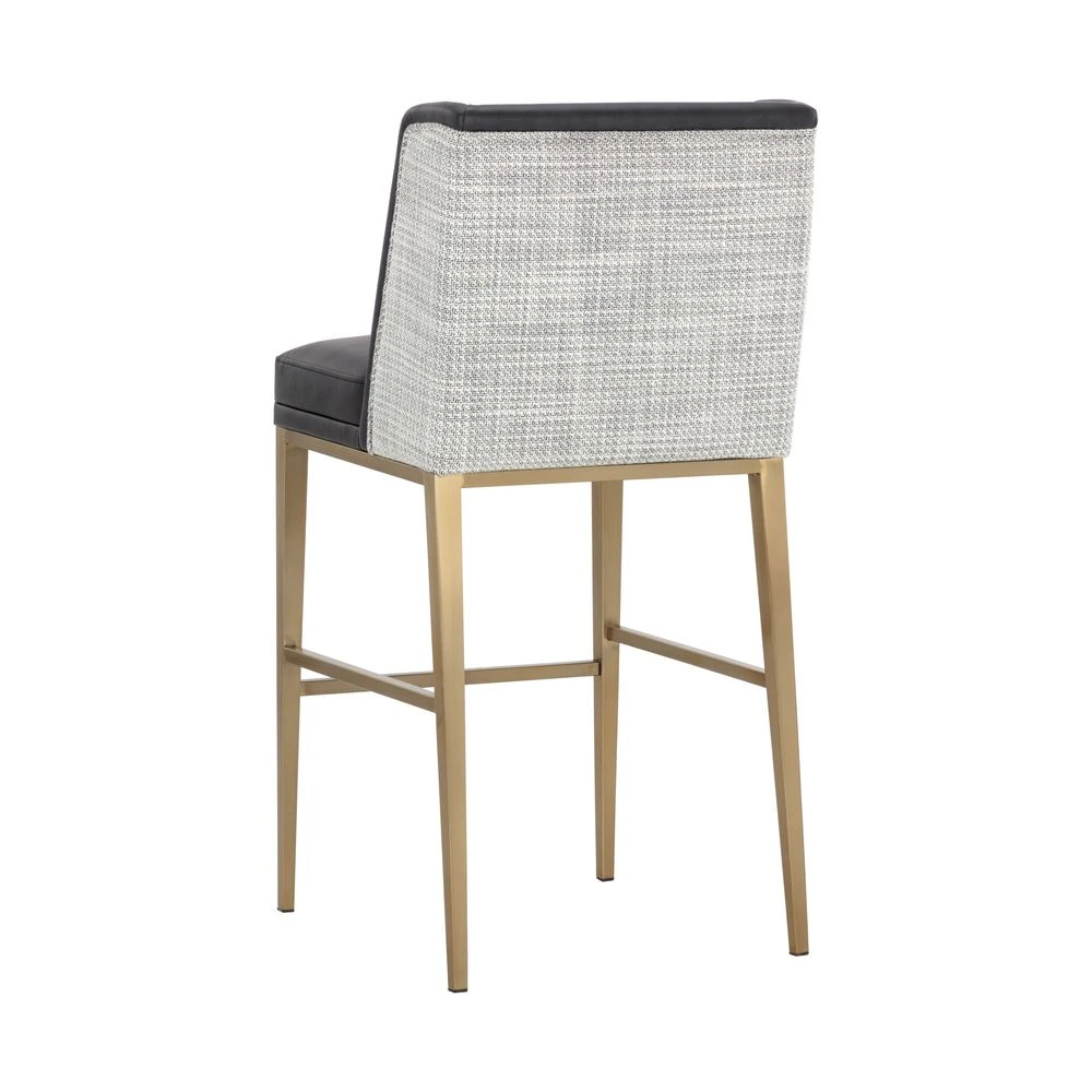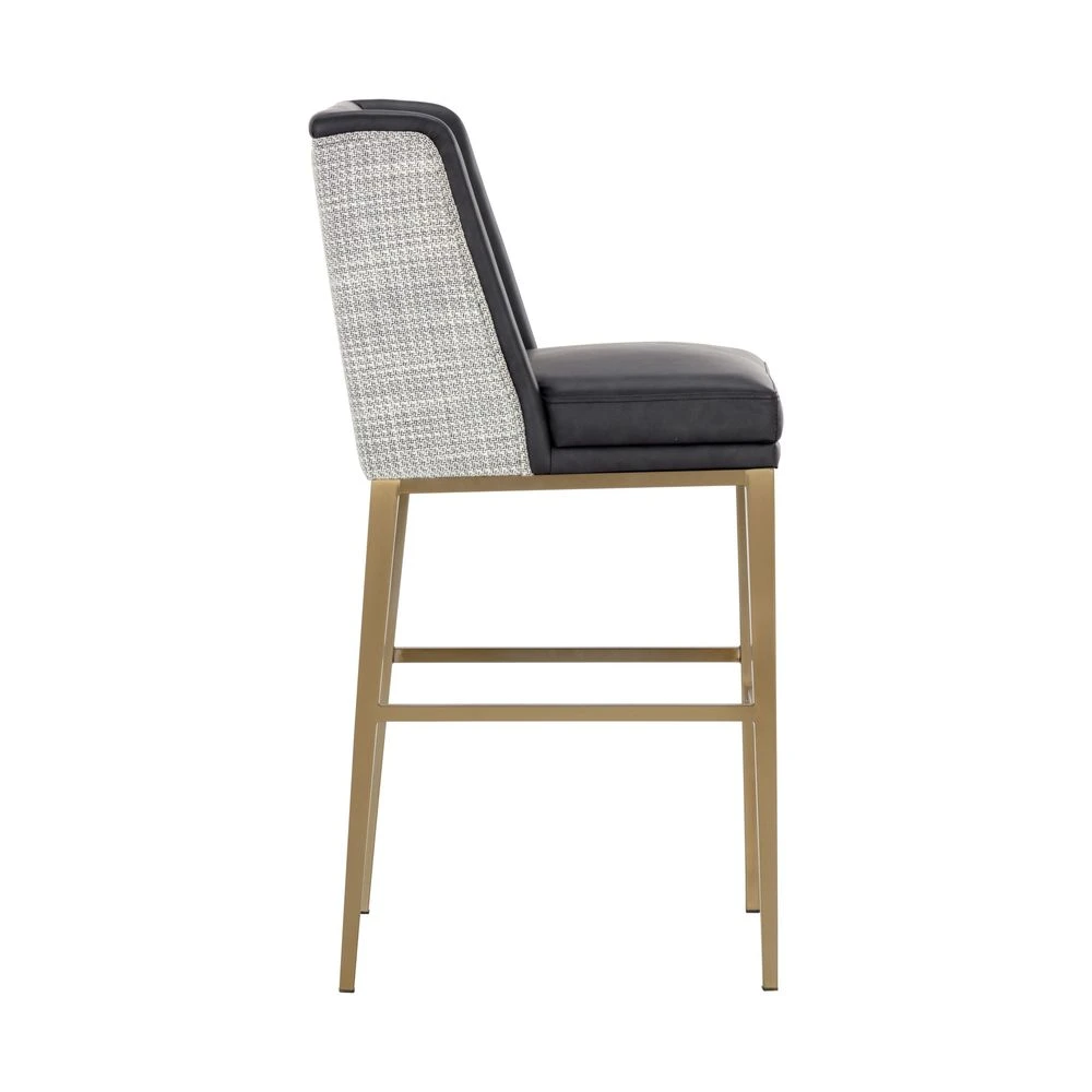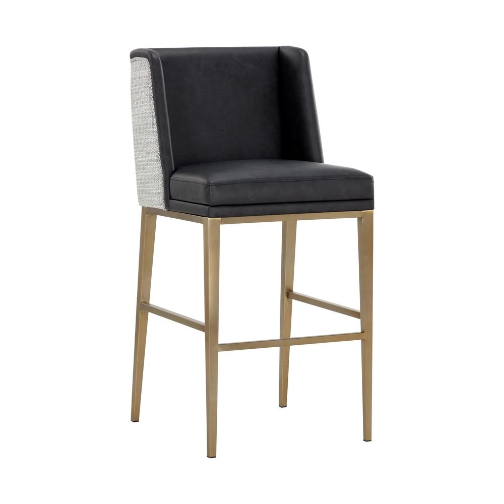Description: The Joplin Barstool introduces a dazzling array of textures and visual contrasts to any dining room. A stunning combination of smooth cantina black faux bonded leather and textured vera white pepper fabric adds a stylishly chic ambience that is sure to leave a lasting impression. Handle with Care: This design has been crafted with bonded leather. Bonded leather is a blend of reconstituted leather and synthetic materials crafted to reflect the natural characteristics of leather; as such, colour variations, markings, wrinkles, grooves and light scratches are acceptable and appreciated characteristics. No two pieces are alike. Visit our Product Care page for more information on how to ensure the lasting beauty of this piece