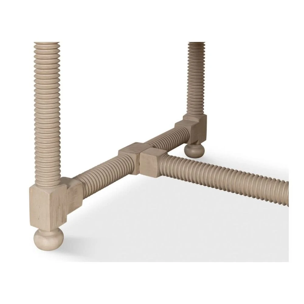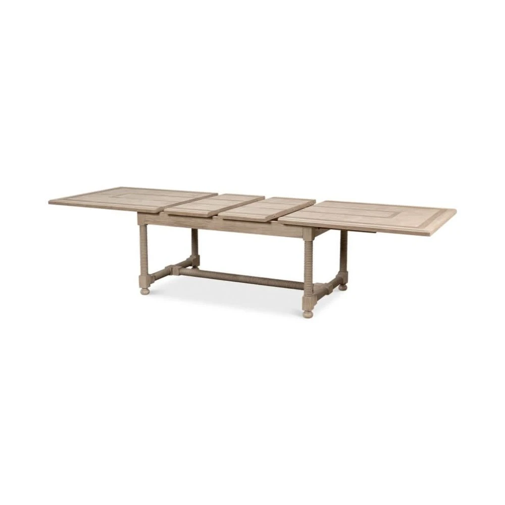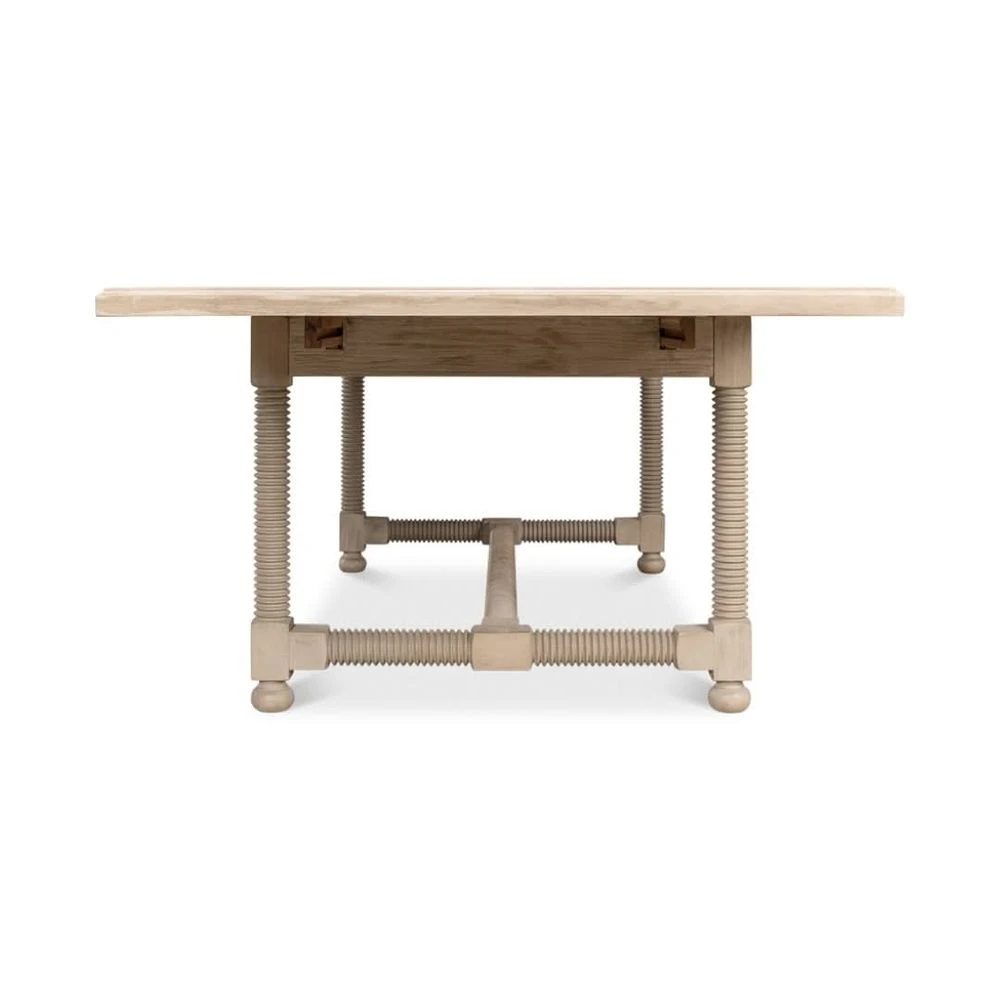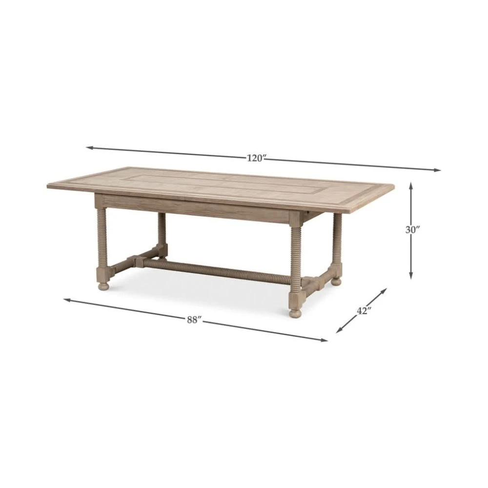 Extending to 120 inches, the Jurow Dining Table from teh Equestrian Collection, is a beautifully subtle masterpiece combining form and function. Constructed of pine and in the exclusive Barn Grey finish, the turned legs and inlay wood pattern on the dining surface are a combination sure to draw attention. From intimate conversations to large family gatherings, the Jurow Table is a gathering place you and yours will enjoy for decades.