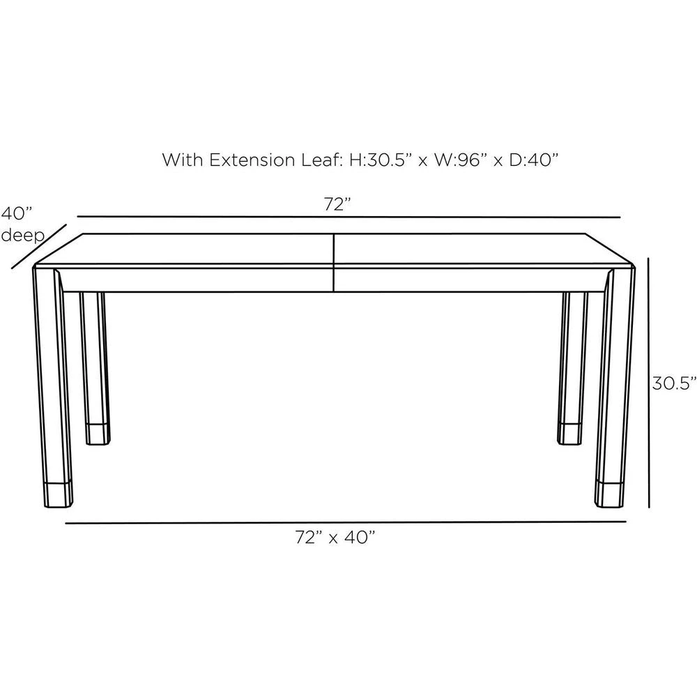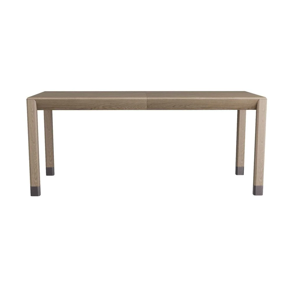 The classic Parsons silhouette gets an elevated and luxurious update in richly patterned tortoise wood oak veneer with bronze-finished brass leg detailing. The sleek and versatile Keaton dining table is designed with thoughtfully positioned angles that create an illusion of a slimmer tabletop profile and an extension leaf that allows for more to sit comfortably. Felt storage bag for the extension leaf is included for careful keeping. Finish will vary.