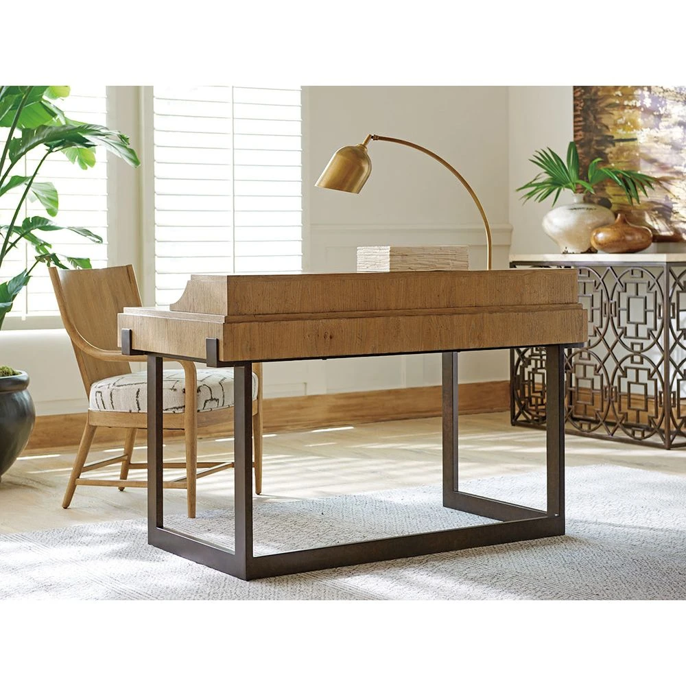 Los Altos is crafted from select Knotty Oak veneers that are gently wire-brushed to enhance the character of the grain, then finished in a semi-transparent natural oak stain and hand-rubbed with a linen-white finishing glaze. The styling conveys a sense of authenticity and casual sophistication. Accent materials include aged bronze metal, travertine, woven Abaca and banana leaf. The look is best described as Global Transitional, offering fresh and relevant designs that celebrate the kinship and diversity of a global community.