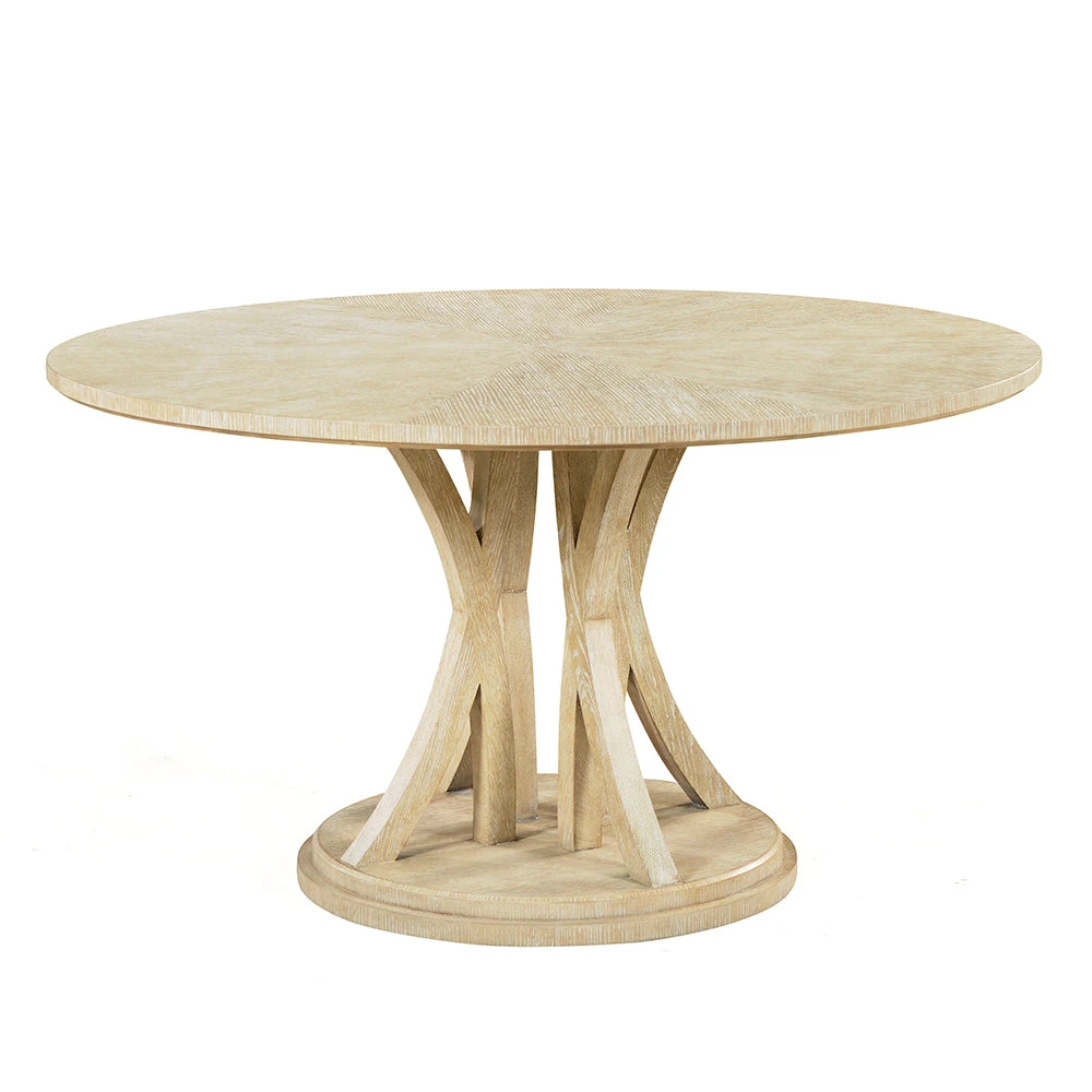 Description: Our Kirkwood Dining Table features a round top and a delicate line-style pedestal base.