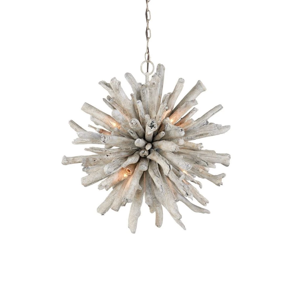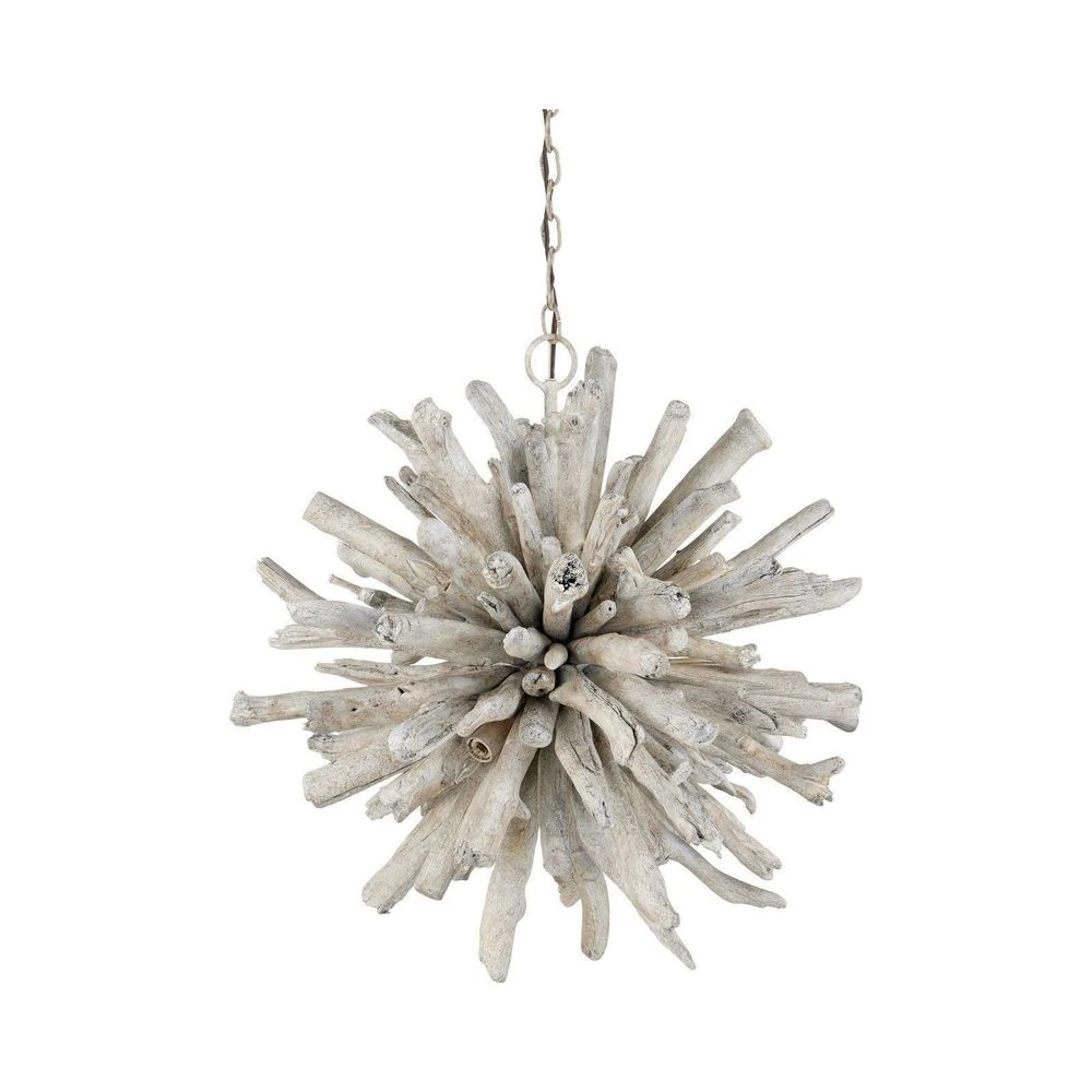 Description: The Kuka Pendant is a driftwood starburst in a whitewashed driftwood finish, which was designed by Marjorie Skouras to continue her celebration of the Yucatan Peninsula that she calls home. The tumbled wood pieces are fitted so carefully to the frame, the nature-inspired profile fools the eye into thinking it came from the elements in one piece. This natural-toned pendant is a perfect choice for coastal settings and lakeside retreats. Adjustable from 31.5″ to 99.5″ with use of included chain/rod kit/cable. If your space calls for a longer drop, additional chain/rods/cable is available for purchase.