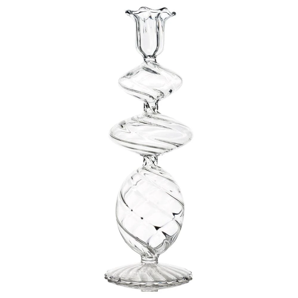 Description: These charming candlesticks are mouth bown using borsillicate glass. They are wonderful scattered down a dining table. Available in clear and 3 colors.