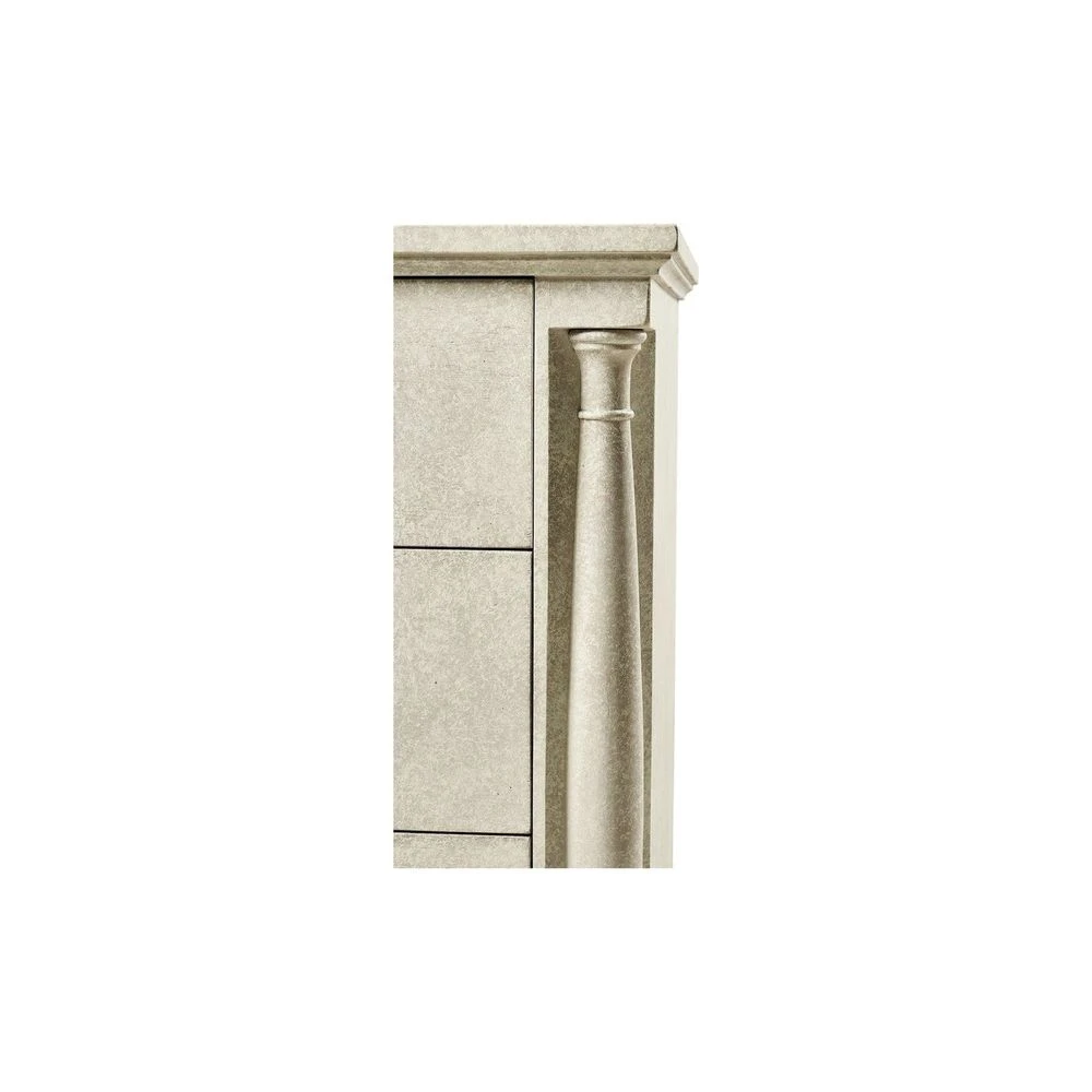 Whitewash driftwood chest of drawers on a stepped pedestal base with brass ring handles.