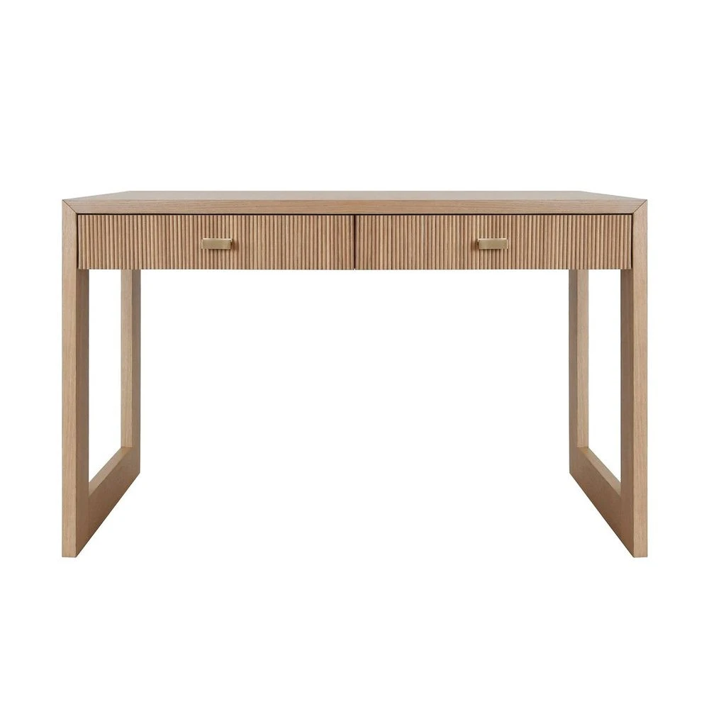 Description: The stunning Larkin NO two drawer desk is not only expertly designed but handcrafted to perfection. The fluted detail adds depth and character to the overall aesthetic giving the piece a unique and stylish edge. The Larkin in our natural oak finish is perfect for anyone looking for a sleek and sophisticated addition to their space.
