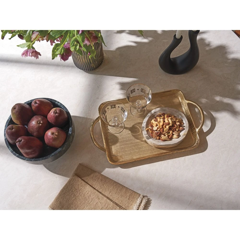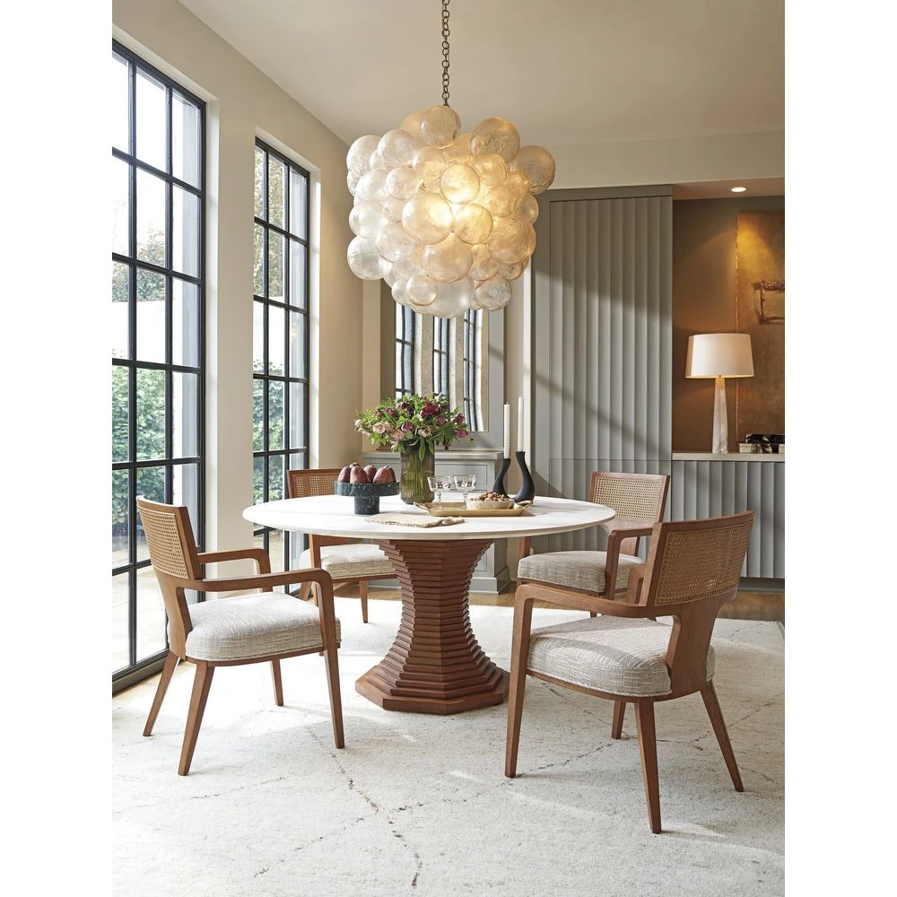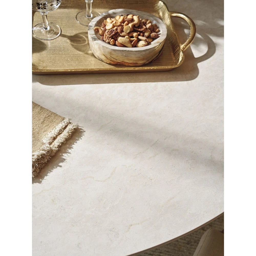 Marketing Copy: Offering a fresh take on casual contemporary living, La Costa features elegant curves, fluted detailing, and a fusion of materials like Anticato marble, honed limestone and metal accents in a satin gold finish. Designs incorporate touches of Mid-Century styling for a sophisticated yet approachable interpretation of luxury living.