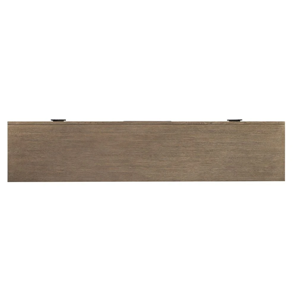 Marketing Copy: Zanzibar offers a fresh take on relaxed contemporary living. In a play on contrasts, designs are crafted from quartered white oak ina warm taupe finish with bases and accents in a deep expresso coloration. Surfaces are gently wire-brushed to enhance the woods natural grain, while sleek custom hardware, finished in dark umber, offers a striking complement. Upholstered seating features clean architectural lines with exceptional tailoring, highlighted by organic and textural fabrics in rich earthy tones. The look is approachable, yet dramatic in tis interpretation of casual contemporary style.