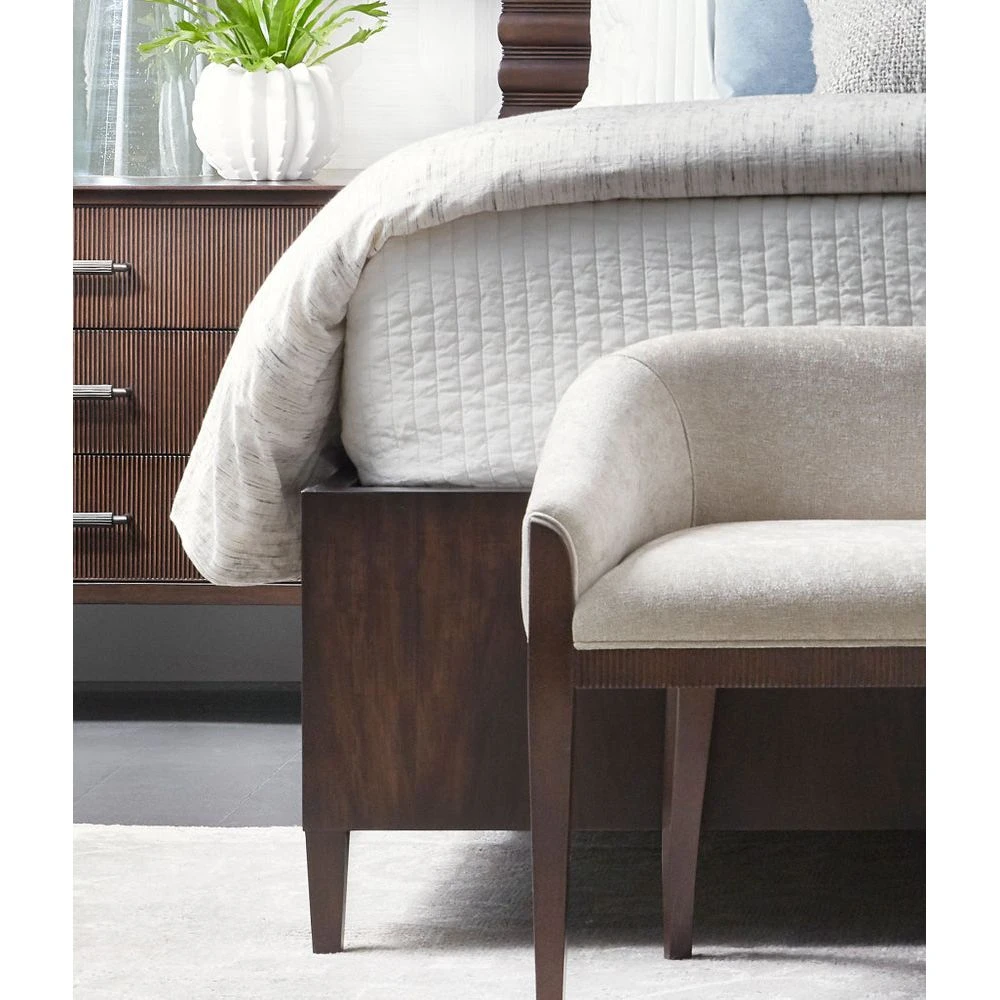 The Lido Bench makes a bold statement with a handsome tight back design featuring curved corners set upon a reeded carved frame and tapered legs.