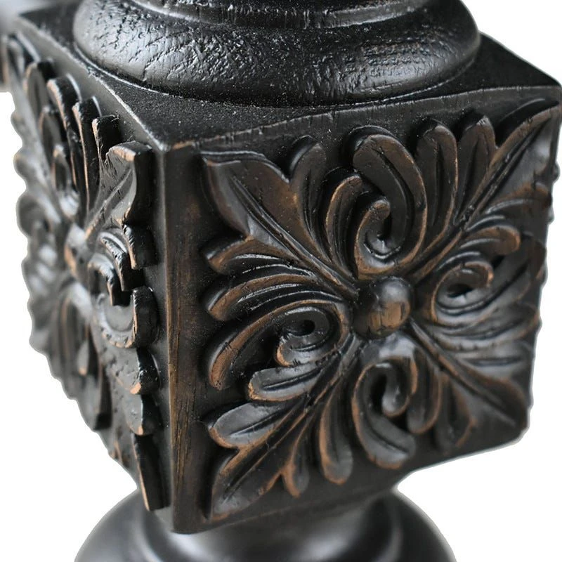 Description: A robust design inspired by Portuguese furnishings of the 18th Century. Furniture from this period tends to be bold, and unique. These pieces often boast elaborately turned legs and energetic carving. A molded rectangular top rests over a folding keyboard drawer flanked by storage drawers.