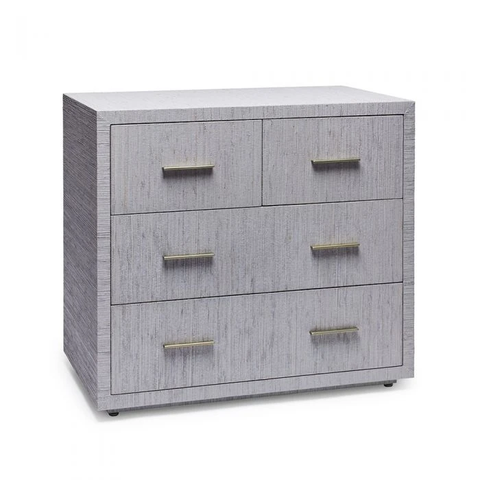 Pairing iron hardware in a champagne silver finish with a mist sisal texture turns the Livia Occasional Chest into a natural, yet super-chic, statement.