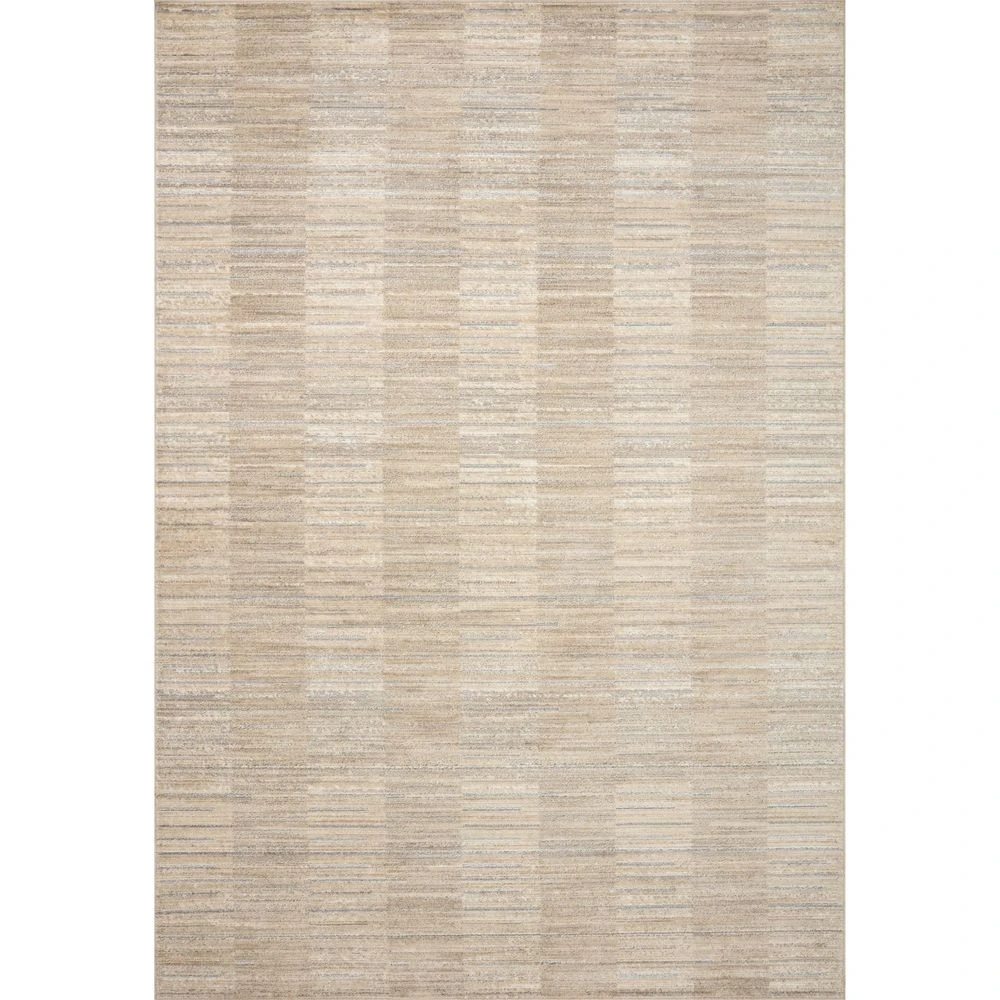 The wide, heathered stripes of the Arden Collection give this neutral area rug an elevated look and feel. It is power-loomed with yarns that are intently shrunk, like one would find in pre-shrunk clothing, at different levels to create a subtle ribbing effect. Made of polyester and polypropylene in Egypt.