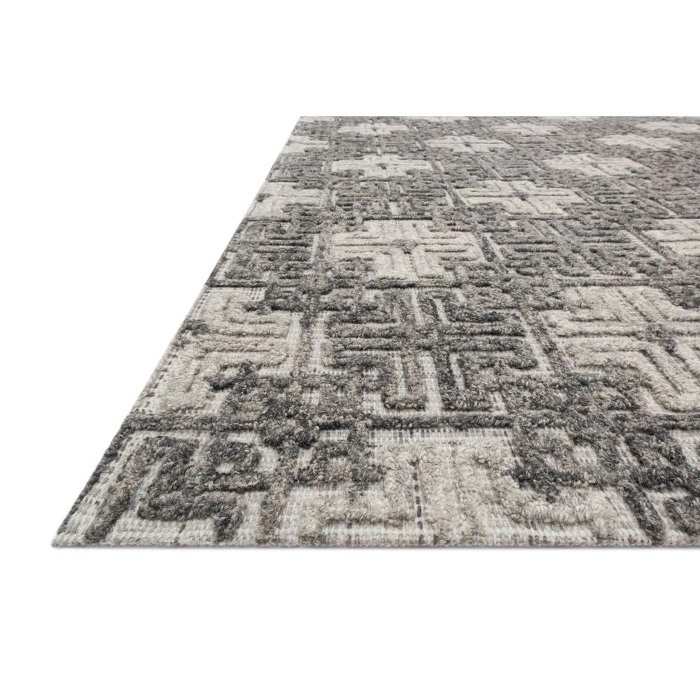 Hand-tufted by skilled artisans in India, the Ehren Collection has a neutral palette, which is offset by strong, yet textural geometric patterns creating a subtle, long-lasting rug made of 100% wool pile.