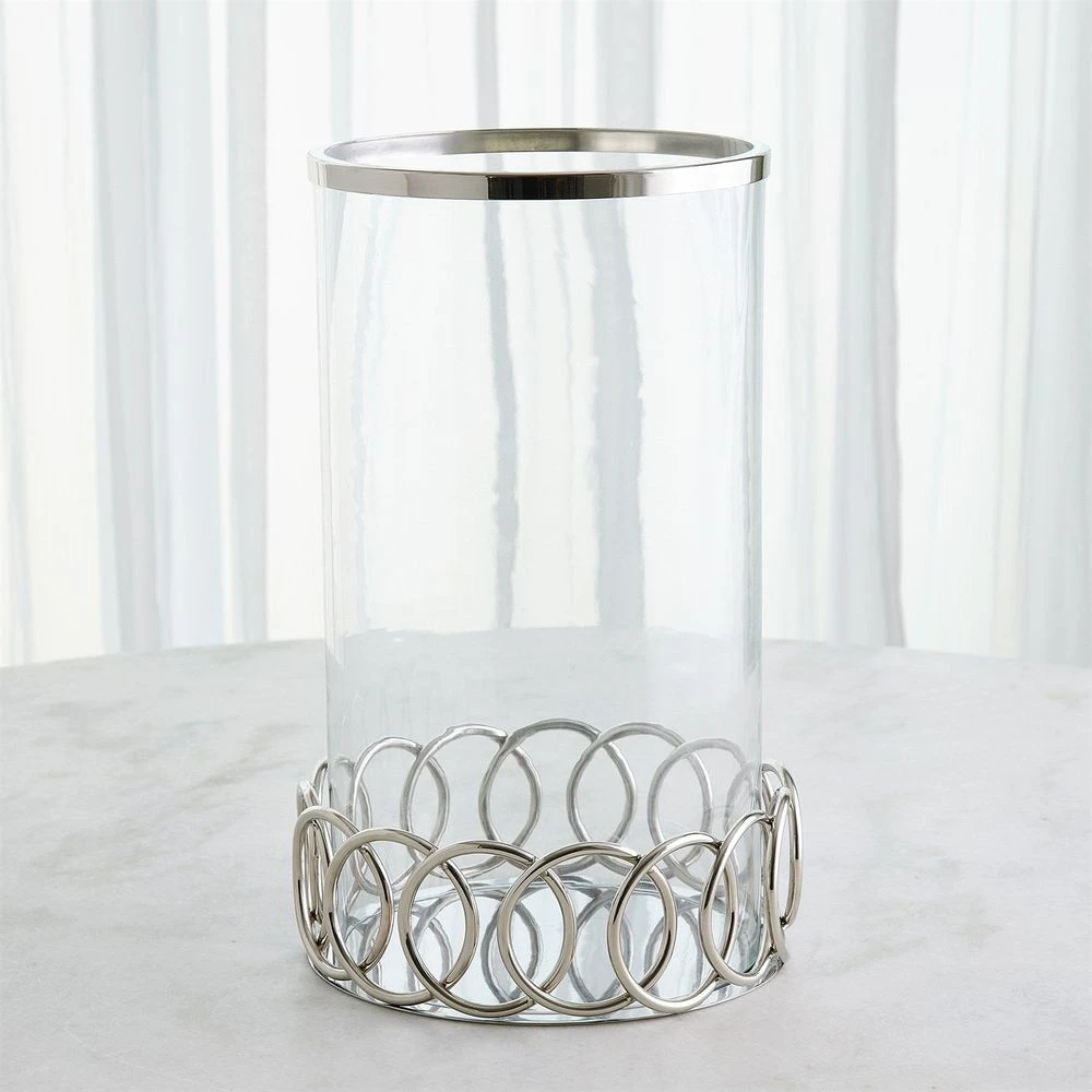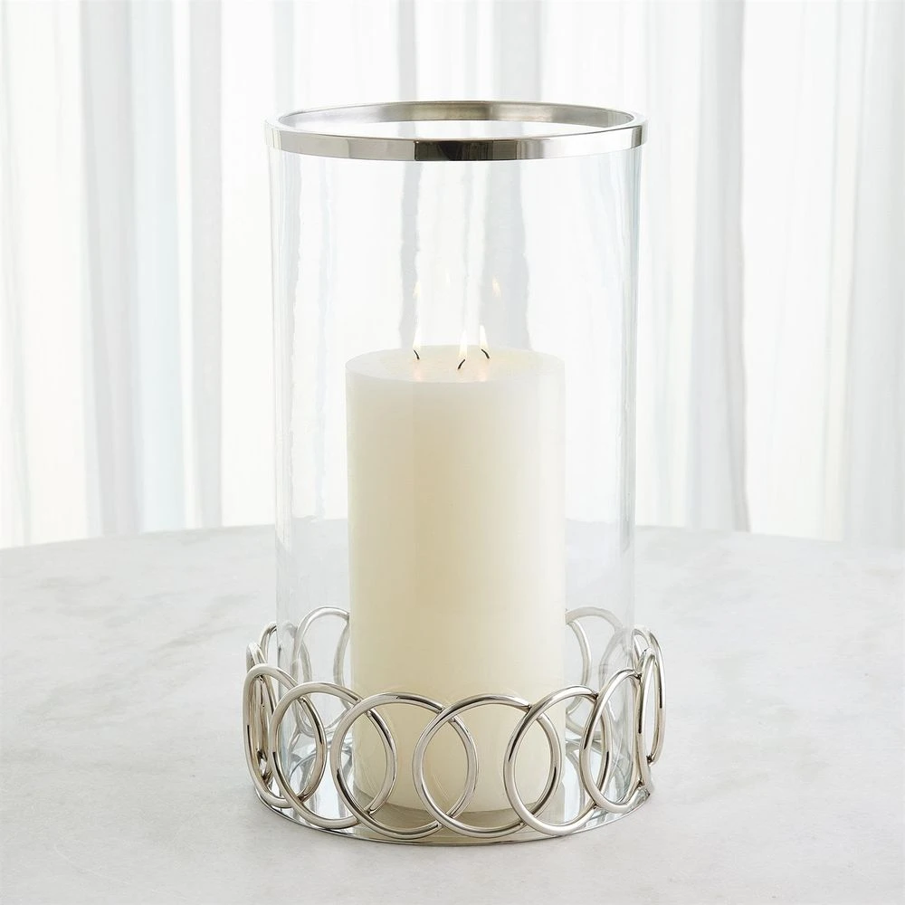 Description: The Loops Hurricane & Tray are a stunning blend of craftsmanship and style, handcrafted from stainless steel with a sleek nickel finish. These elegant pieces are perfect for adding modern sophistication to any space.
