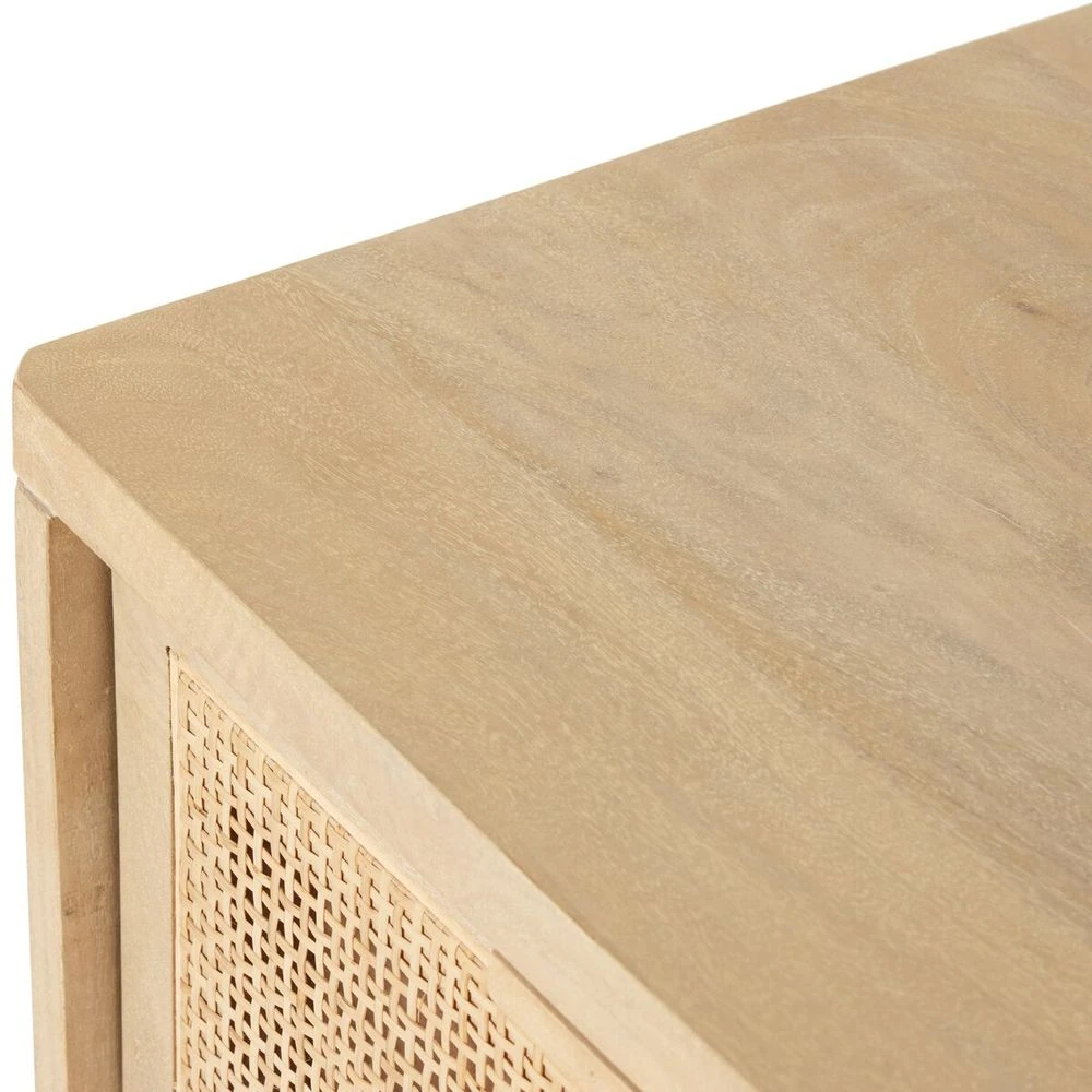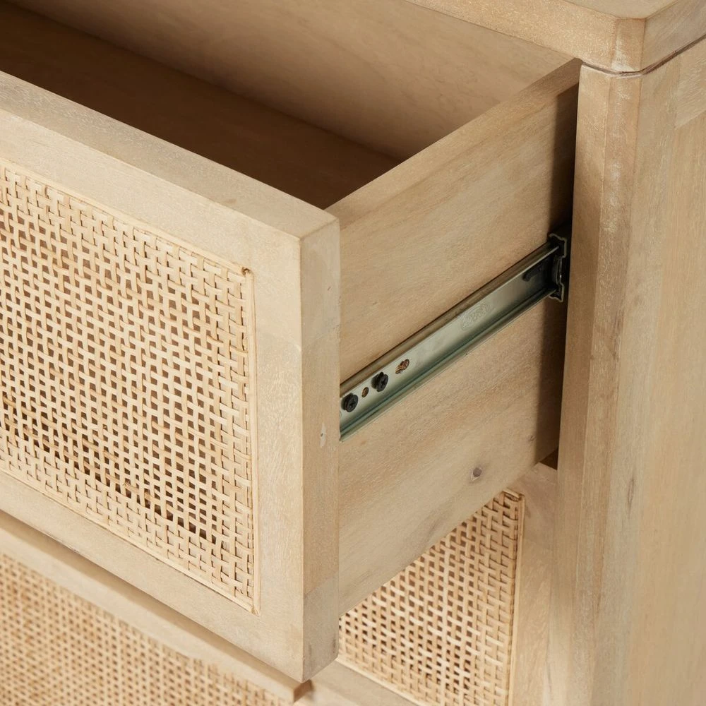 Natural mango encases nine spacious drawers of woven cane, for a textural look with eye-catching contrast.