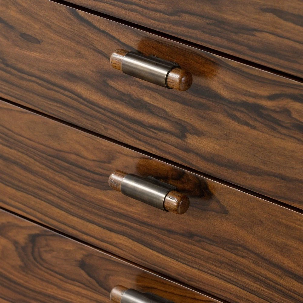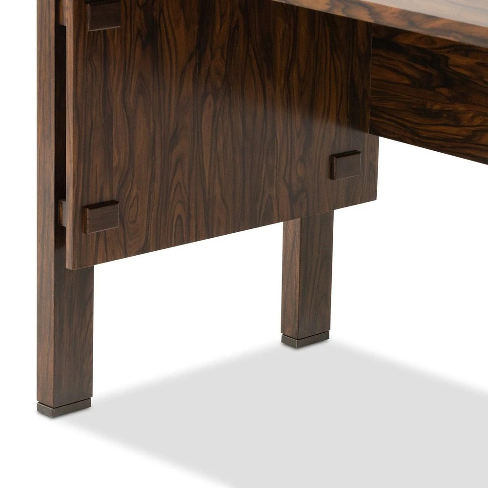 Description: Made from natural morado with beautiful graining, this midcentury-inspired executive desk is fully finished for the option to float-style in a room.
