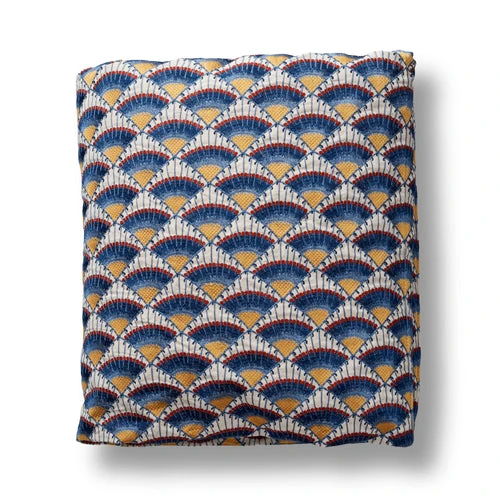 Named for the refined, white-glazed pottery of the Italian Renaissance. The intricate embroidery in a medley of blues, yellow & red is inspired by the design of a bowl with arms of the Ridolfi di Borgo of Florence.