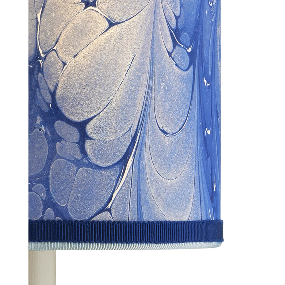 Description: Petite shades are an easy way to bring added style to a space while also introducing color and texture, particularly when they are made from artisanal marbleized paper and ornamented with two layers of grosgrain ribbon in different hues. The saturation of the colors on the handmade tapered and cylindrical shades for chandeliers and wall sconces is achieved by a New England atelier. Patterns will vary because they are created during a very organic process that makes any surface treated to marbleizing so special. There are both vivid and pastel patterns in this collection, as you can see from this swirling bright blue version of the drum shade. Top Diameter: 5″ Bottom Diameter: 5″ Height: 5″
