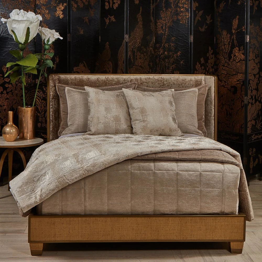 Abstract embroidery glistens and catches light.