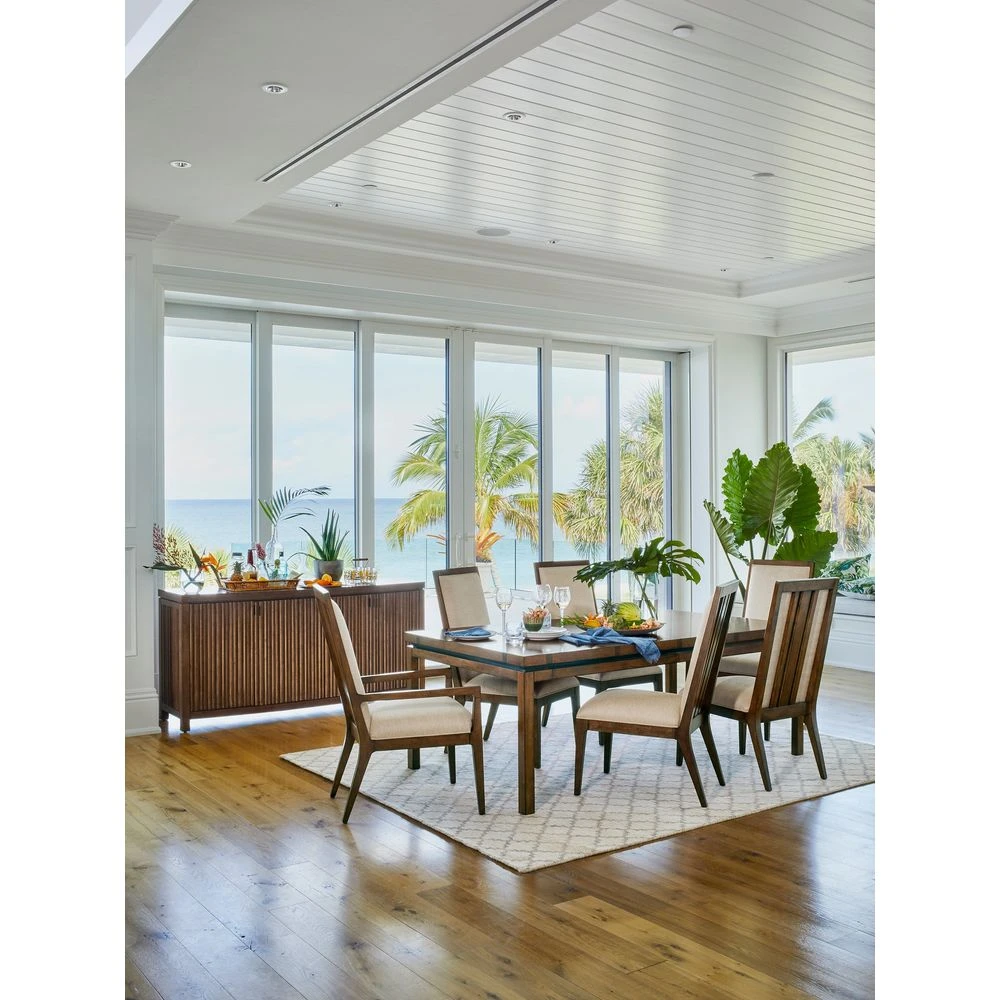 Marketing Copy: With a refined yet restrained aesthetic, Pan-Asian design ascribes great value to visual composition, clean disciplined lines and the goal of infusing tranquility into today’s contemporary décor. Island Fusion embraces the Zen side of Tommy Bahama Home, with bold designs that blend horizontal and vertical elements, dramatic statement hardware and accents of eclectic natural materials that offer a unique look to every piece. The result is a striking modern expression of personal style, with a vibe that feels relaxed and livable. Statement pieces define the room, while custom upholstery offers an invitation to enjoy the laid-back comfort of casual sophisticated living.