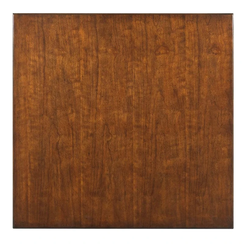 An elegant game table with graceful tapering legs that elevate shaped side rails and apron rail drawers on all sides. The square top houses drawers to store game pieces with a removable drink holder.